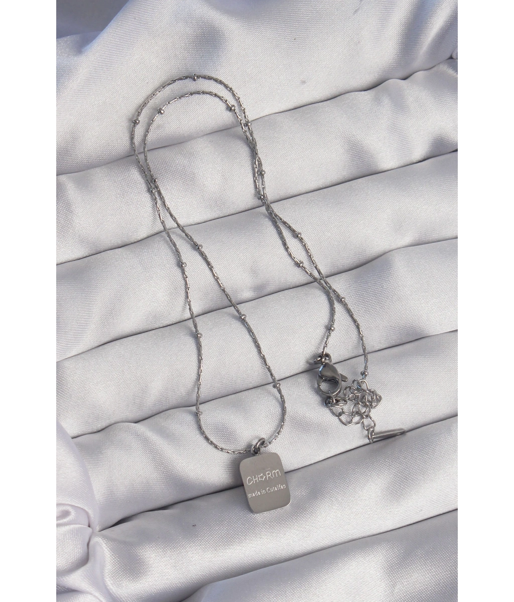 Shoecide 316l Çelik Gümüş Renk Kare Charm Model Kolye