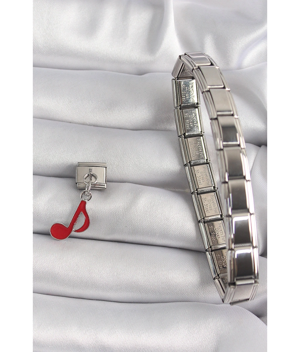 Shoecide 316l Çelik Gümüş Renk Kırmızı Nota Model Nomination Charm