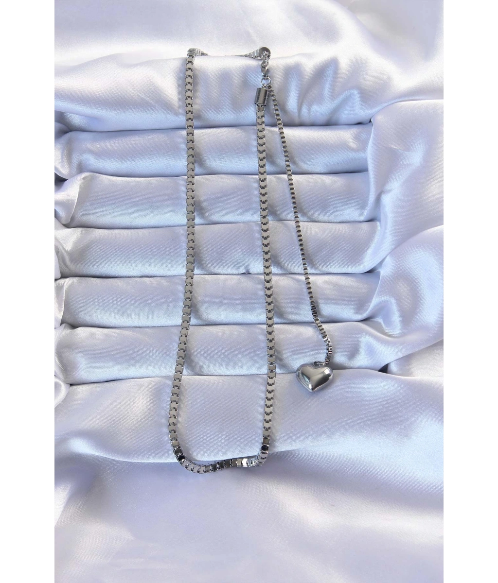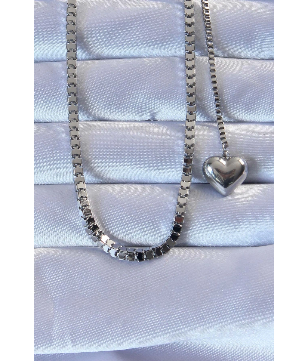 Shoecide 316l Çelik Gümüş Renk Küp Zincirli Kalpli Kolye