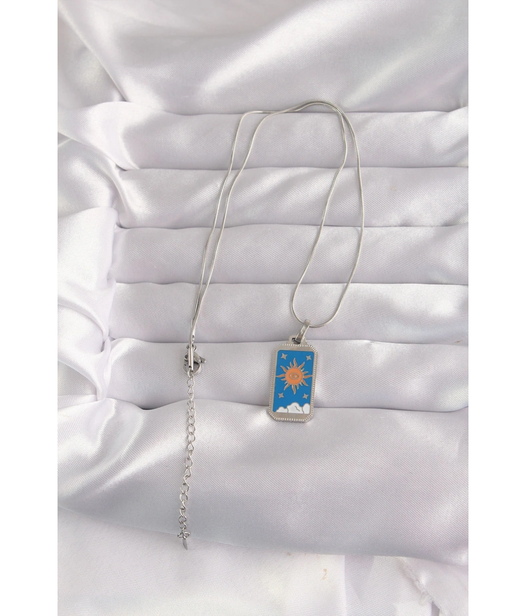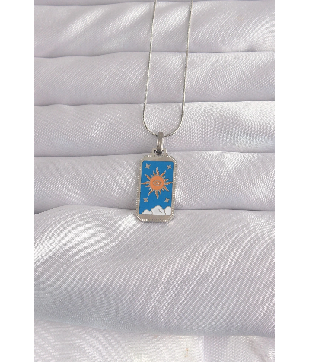 Shoecide 316l Çelik Gümüş Renk Mavi Mineli Güneş Model Tarot Kolye