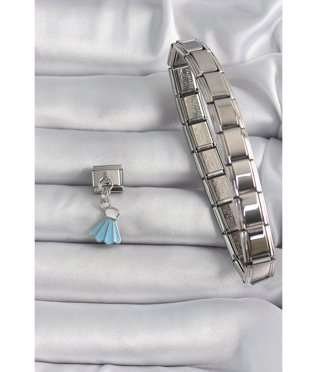 Shoecide 316l Çelik Gümüş Renk Mavi Renk Sallantı Elbise Model Nomination Charm
