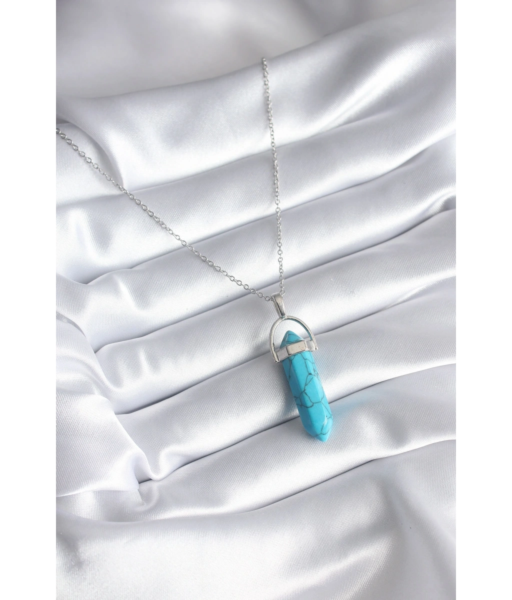 Shoecide 316l Çelik Gümüş Renk Mavi Taşlı Model Kadın Kolye