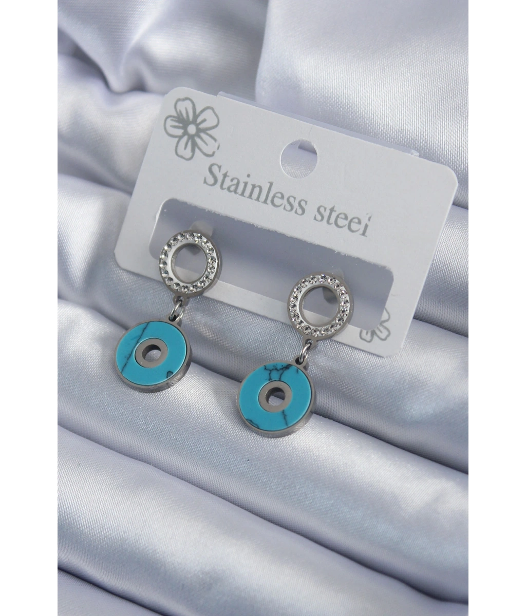 Shoecide 316l Çelik Gümüş Renk Mavi Taşlı Zirkon Taşlı Kadın Küpe