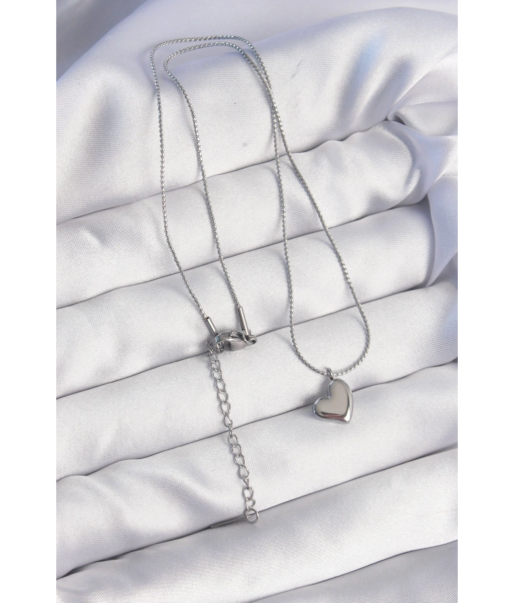 Shoecide 316l Çelik Gümüş Renk Minimal Kalp Tasarımlı Kolye