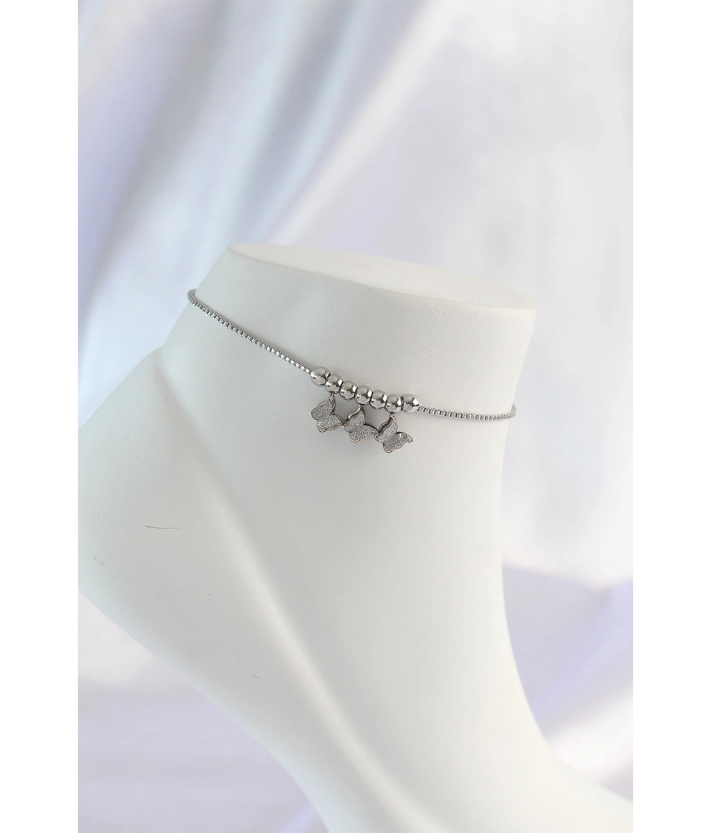 Shoecide 316l Çelik Gümüş Renk Simli Kelebek Model Kadın Halhal