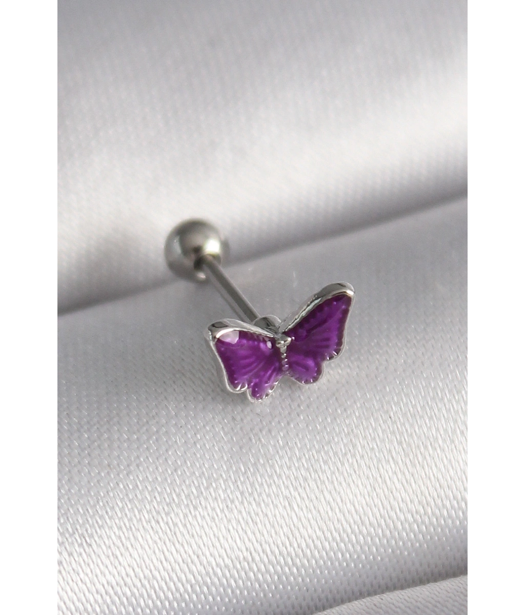Shoecide 316l Çelik Gümüş Renk Mor Kelebek Model Tragus Piercing