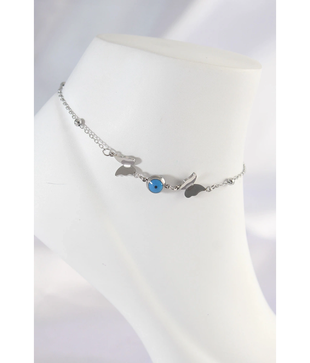 Shoecide 316l Çelik Gümüş Renk Nazar Boncuk Detay Kelebek Halhal
