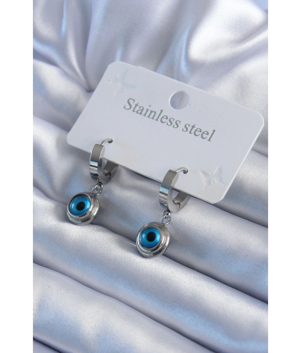 Shoecide 316l Çelik Gümüş Renk Nazar Boncuk Model Kadın Küpe