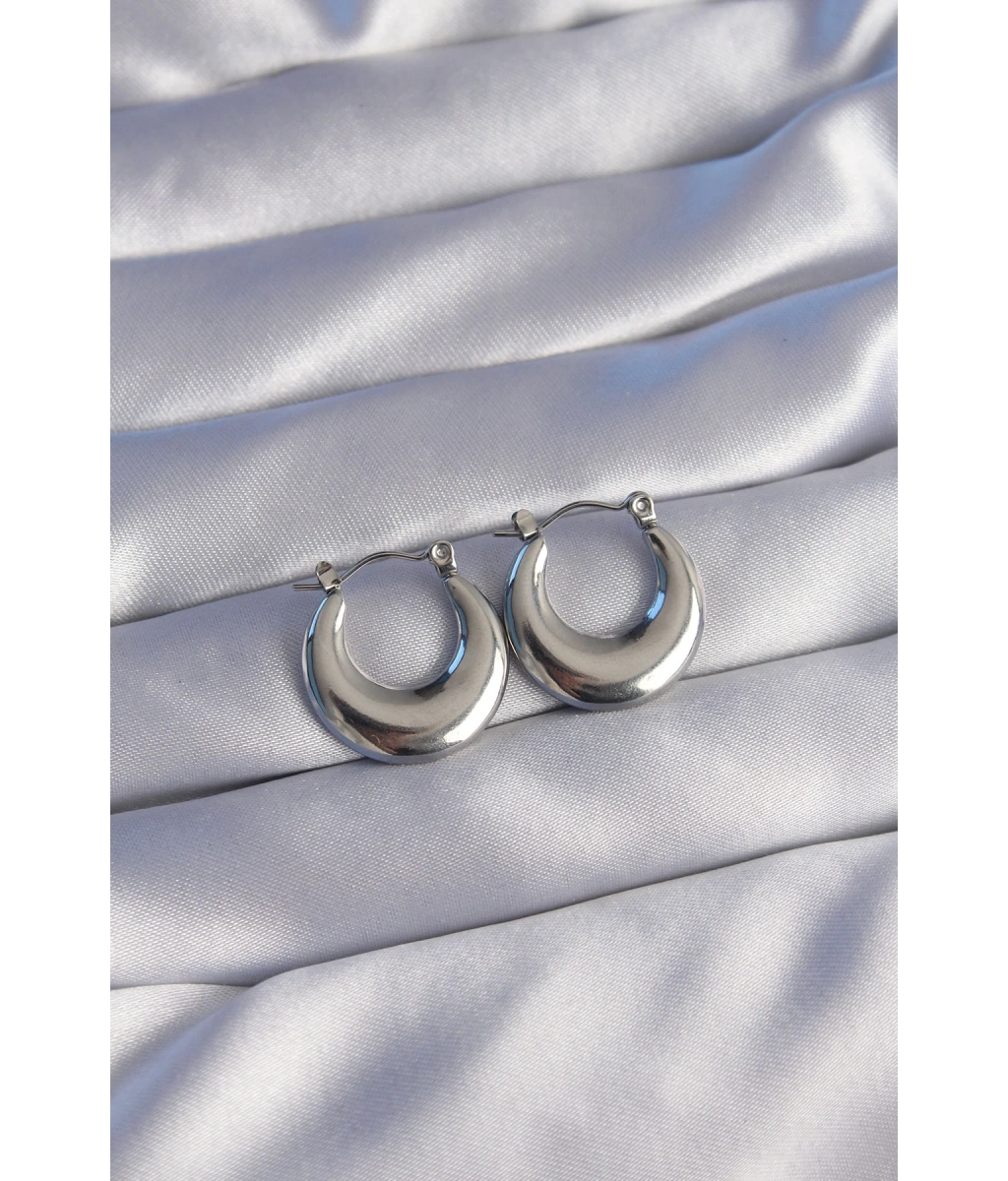Shoecide 316l Çelik Gümüş Renk Oval Ayna Model Küpe