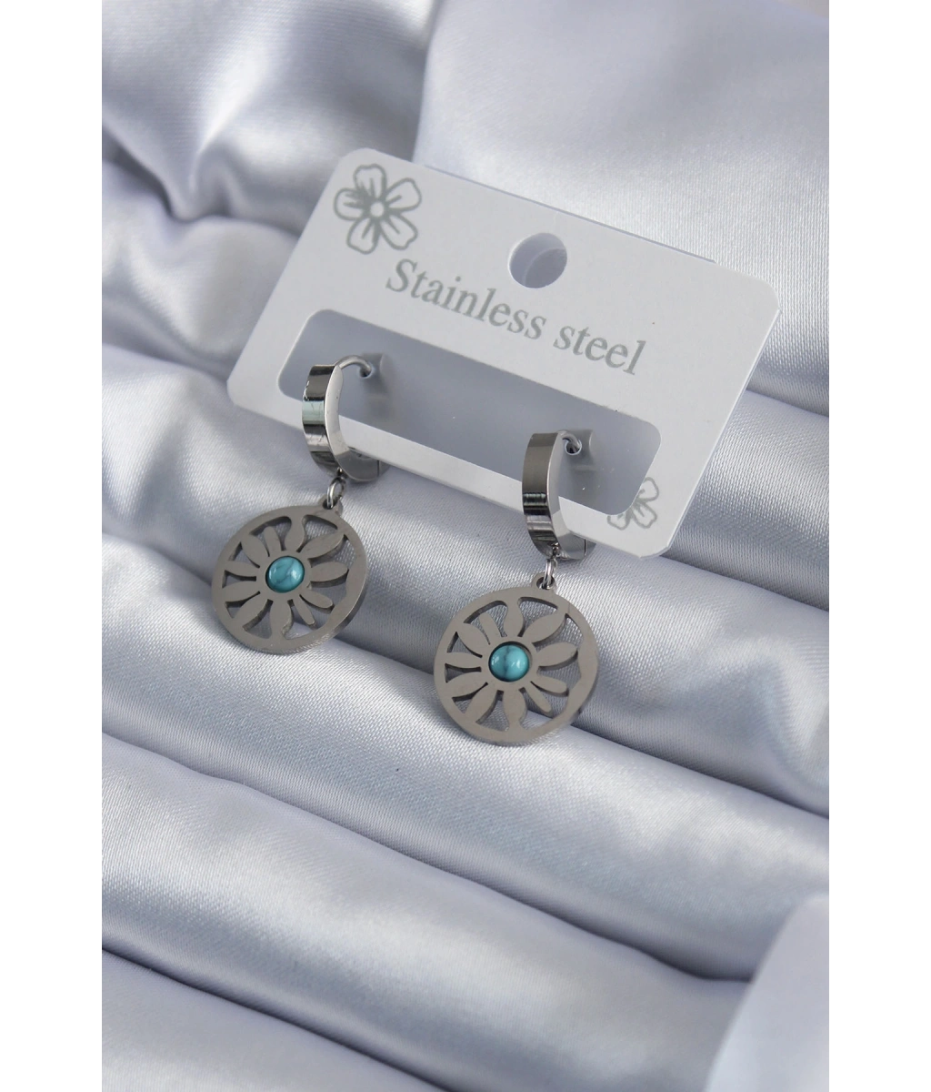 Shoecide 316l Çelik Gümüş Renk Papatya Model Mavi Taş Detay Kadın Küpe