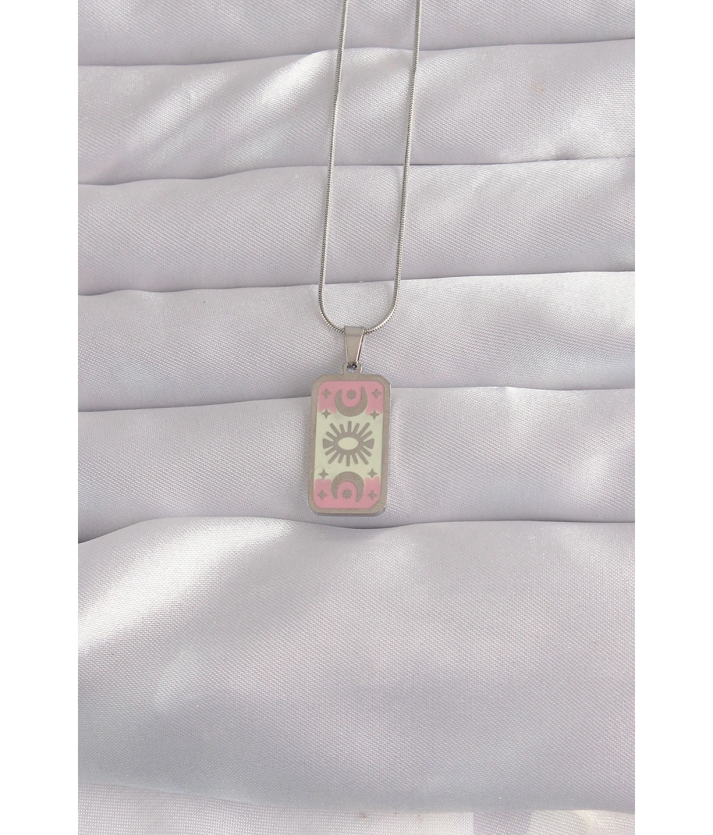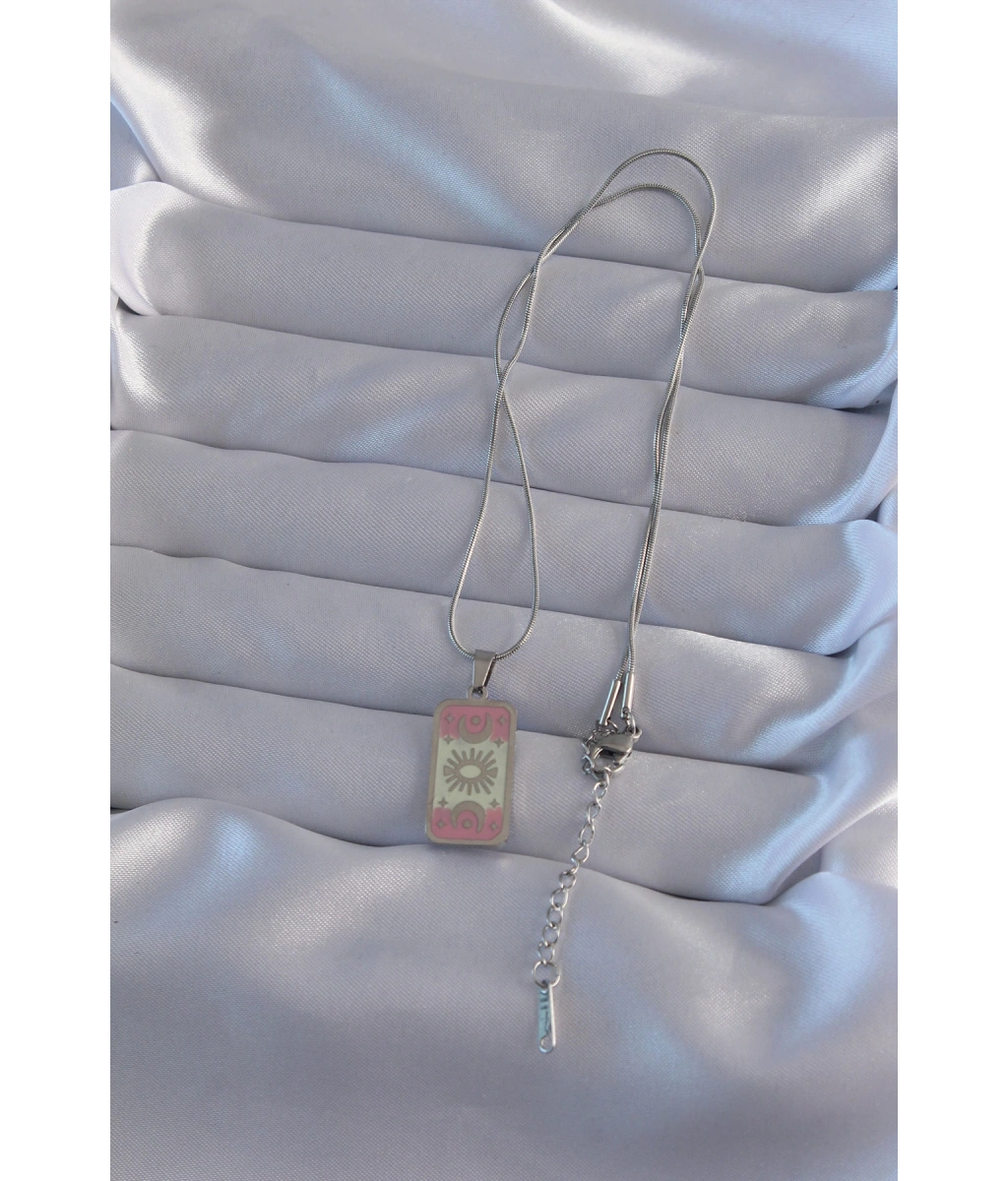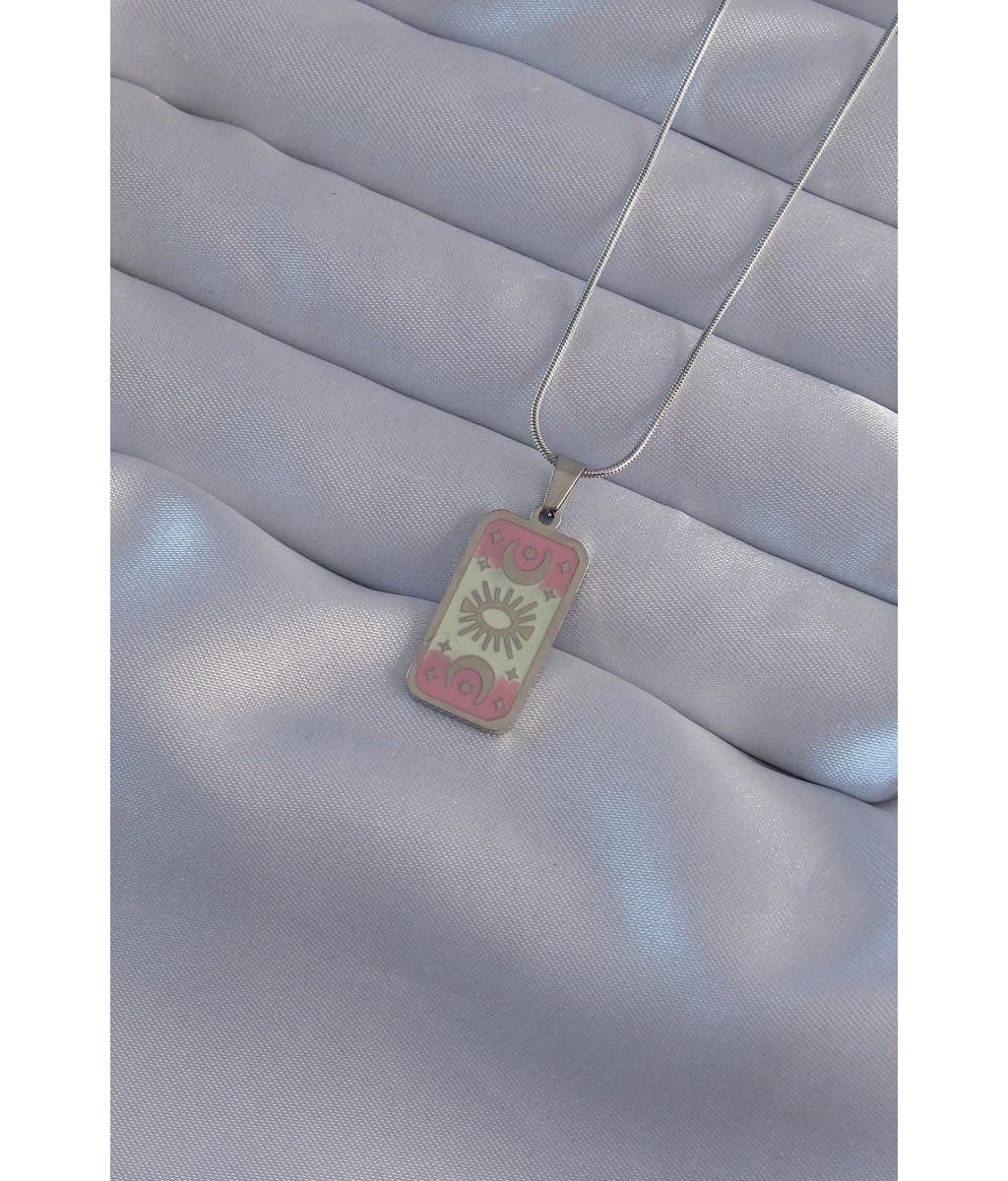 Shoecide 316l Çelik Gümüş Renk Pembe Mineli Ay Figür Tarot Kolye