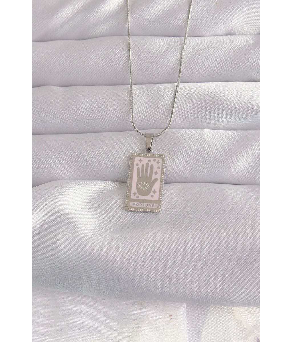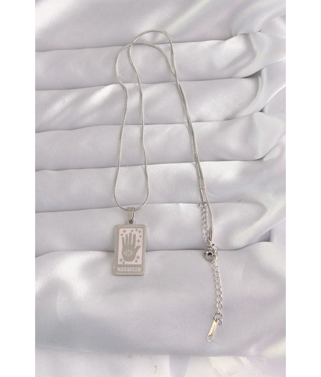 Shoecide 316l Çelik Gümüş Renk Pembe Mineli El Figür Tarot Kolye