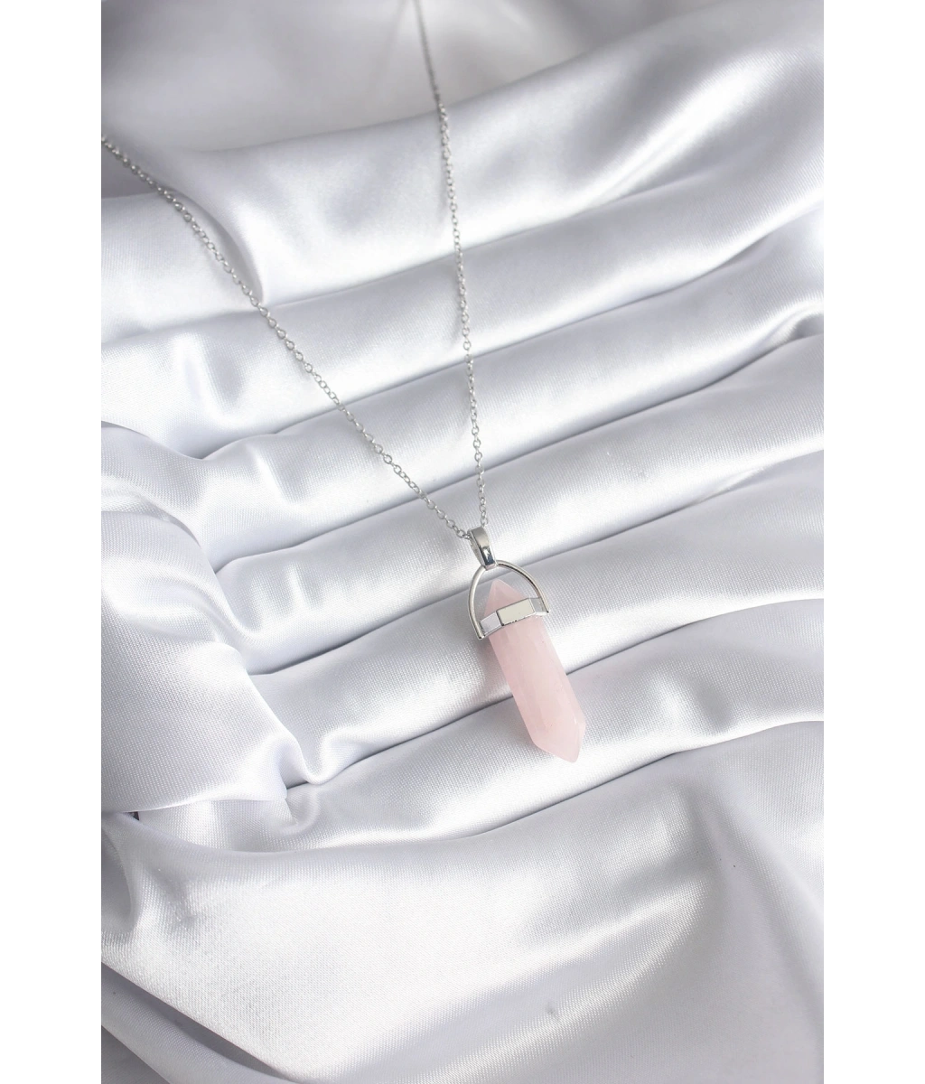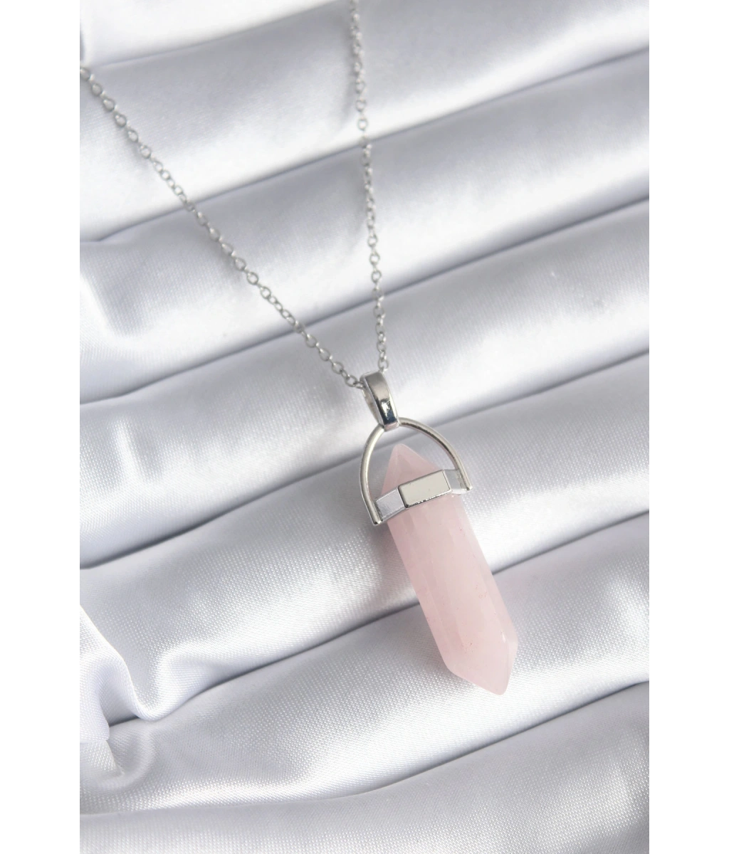 Shoecide 316l Çelik Gümüş Renk Pembe Taşlı Kadın Kolye