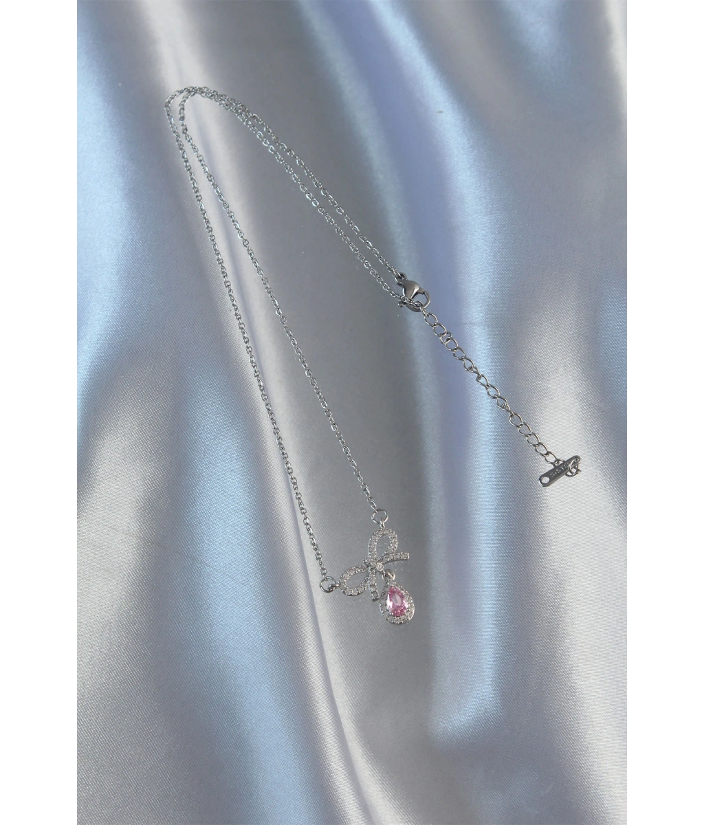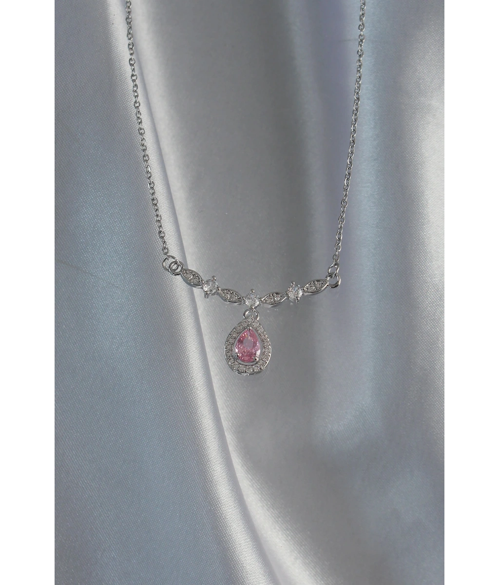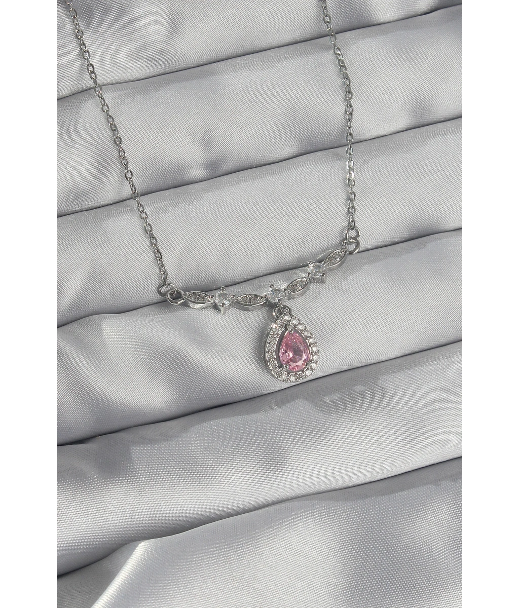 Shoecide 316l Çelik Gümüş Renk Pembe Zirkon Taşlı Damla Kolye