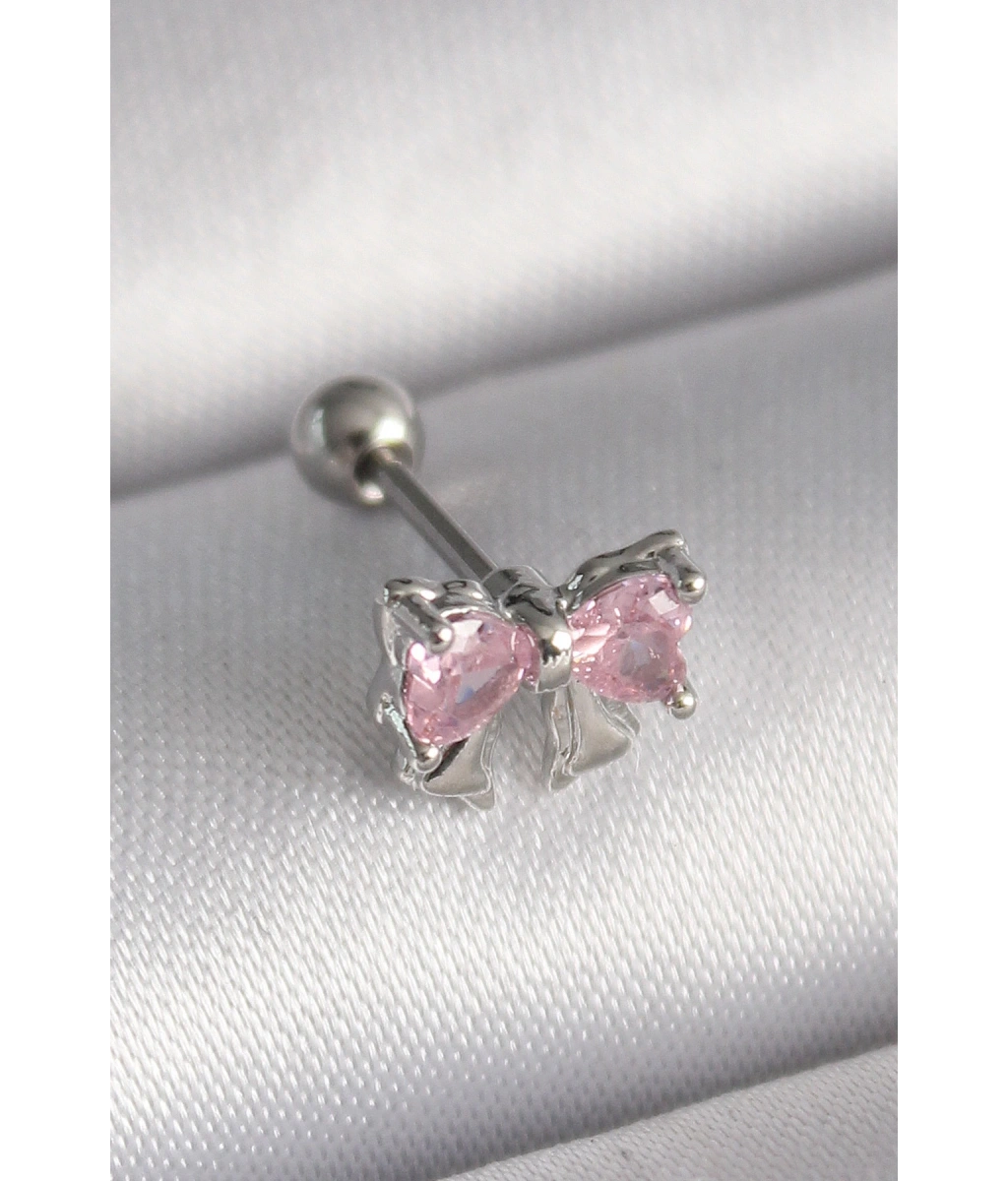 Shoecide 316l Çelik Gümüş Renk Pembe Zirkon Taşlı Fiyonk Tragus Piercing