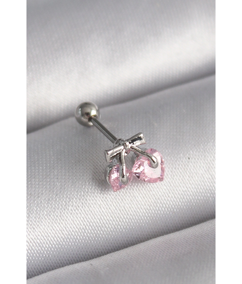 Shoecide 316l Çelik Gümüş Renk Pembe Zirkon Taşlı Kalp Tragus Piercing