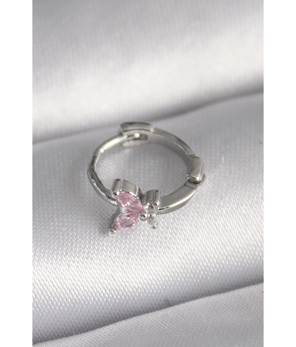 Shoecide 316l Çelik Gümüş Renk Pembe Zirkon Taşlı Kelebek Model Tragus Piercing