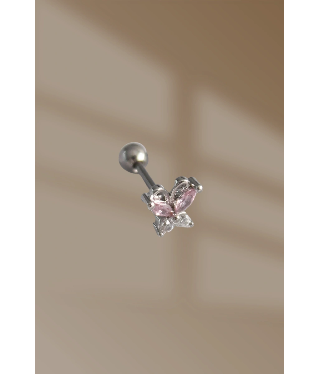 Shoecide 316l Çelik Gümüş Renk Pembe Zirkon Taşlı Kelebek Tragus Piercing