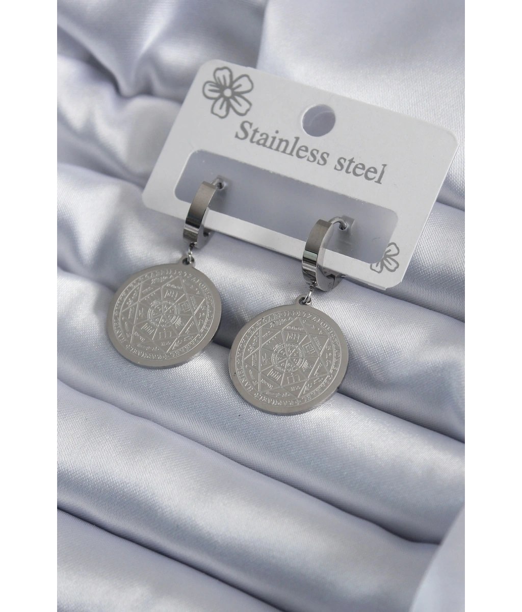 Shoecide 316l Çelik Gümüş Renk Pentagram Yıldızı İşleme Kadın Küpe