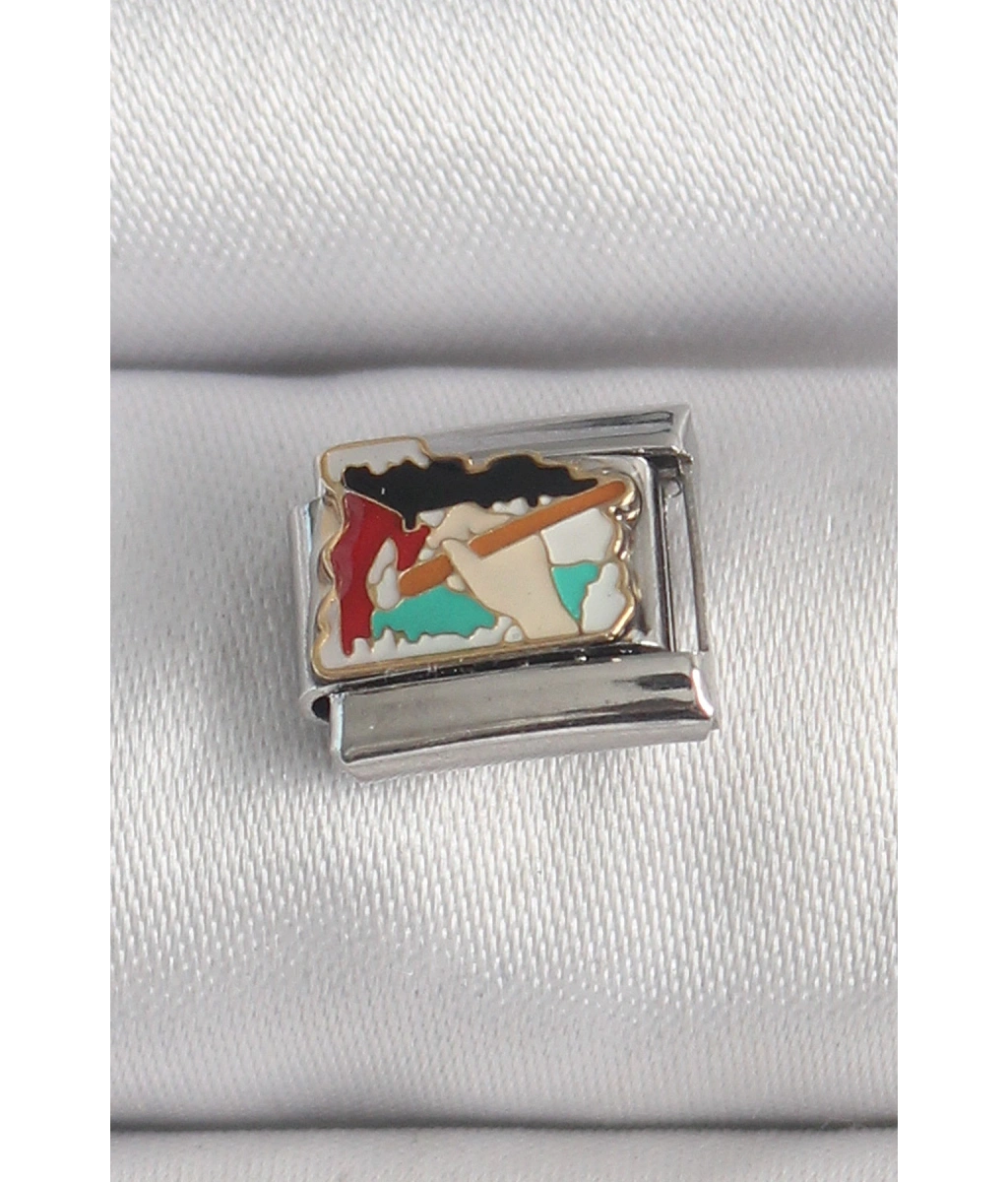 Shoecide 316l Çelik Gümüş Renk Renkli Palet Fırça İşlemeli Model Nomination Charm