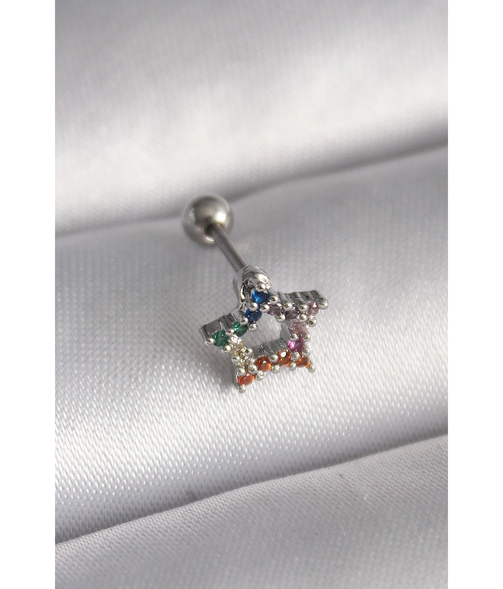 Shoecide 316l Çelik Gümüş Renk Renkli Zirkon Taşlı Yıldız Model Tragus Piercing