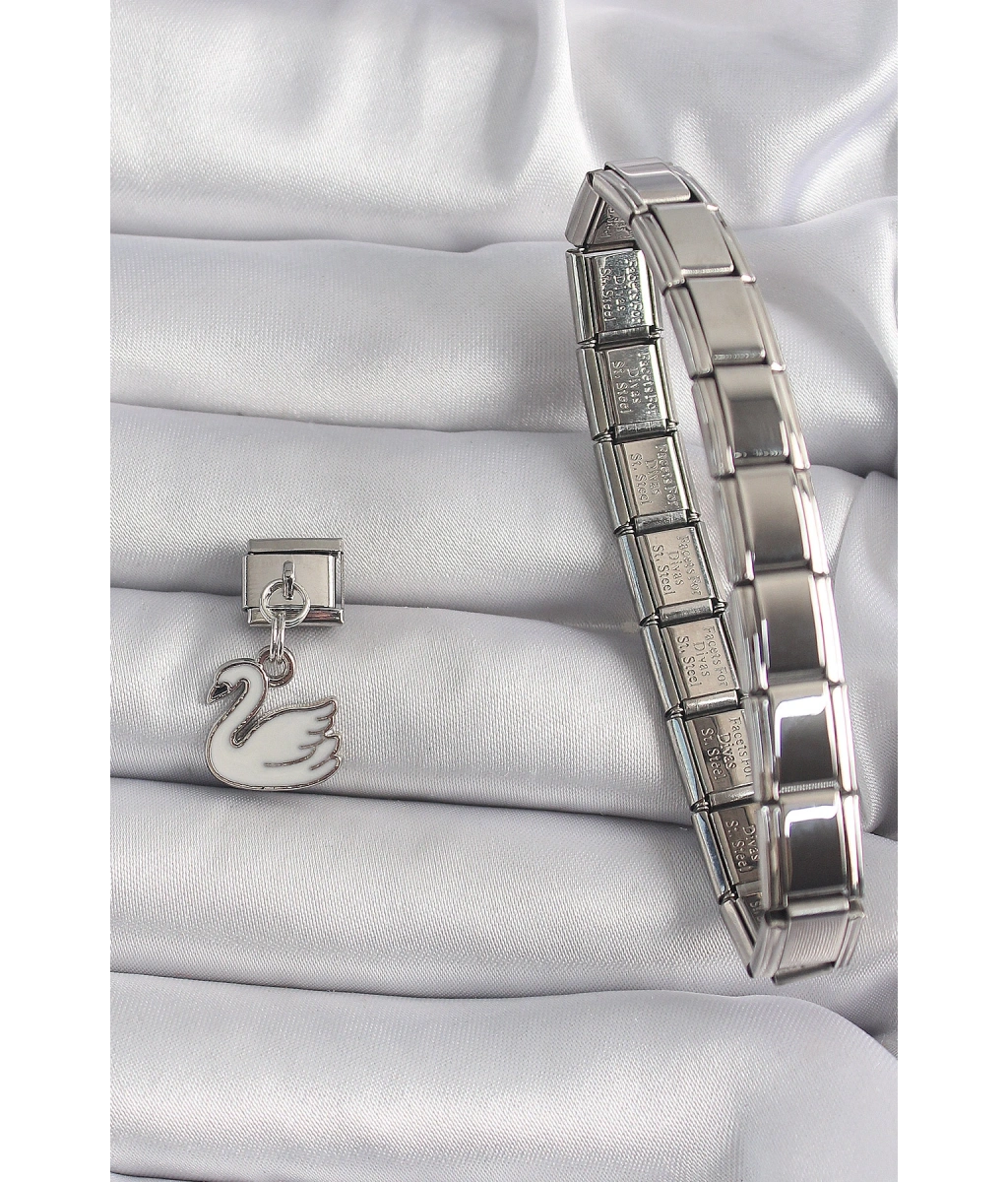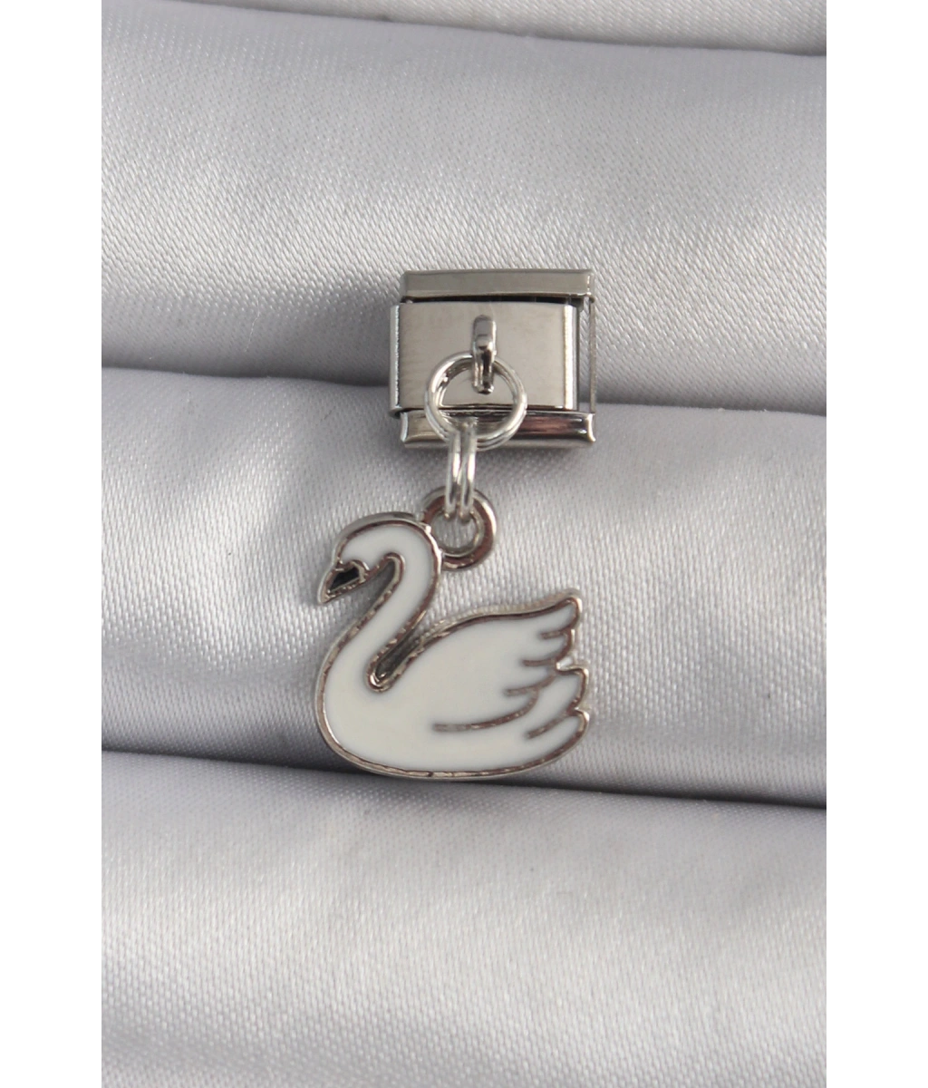 Shoecide 316l Çelik Gümüş Renk Sallantı Beyaz Kuğu Model Nomination Charm