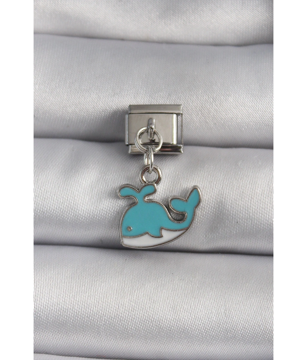 Shoecide 316l Çelik Gümüş Renk Sallantı Mavi Balina Model Nomination Charm