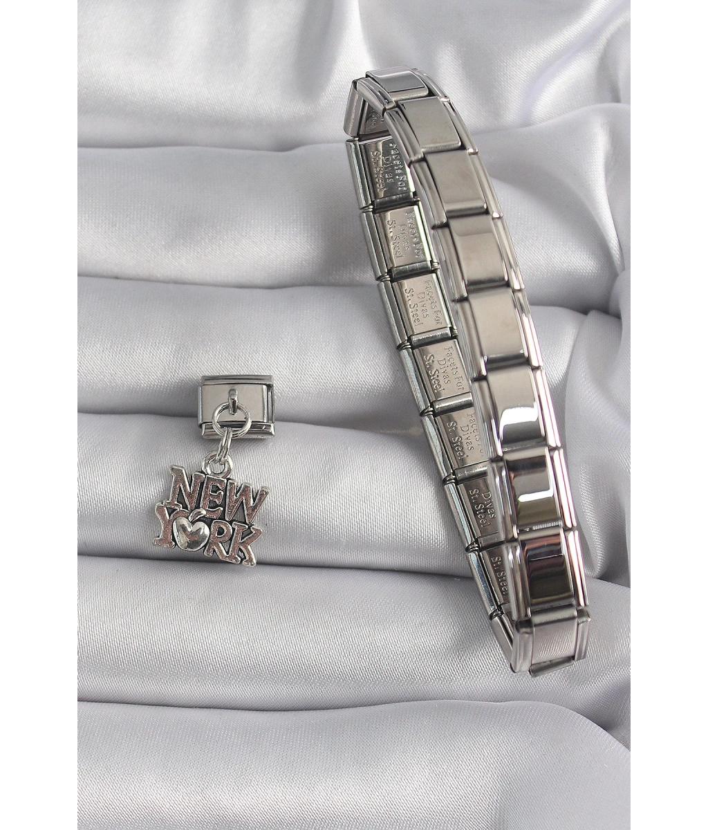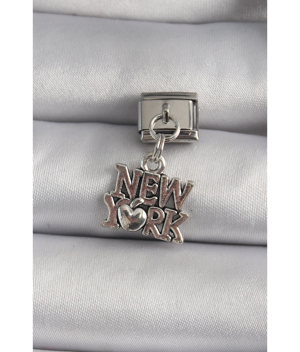 Shoecide 316l Çelik Gümüş Renk Sallantı New York Yazı Model Nomination Charm