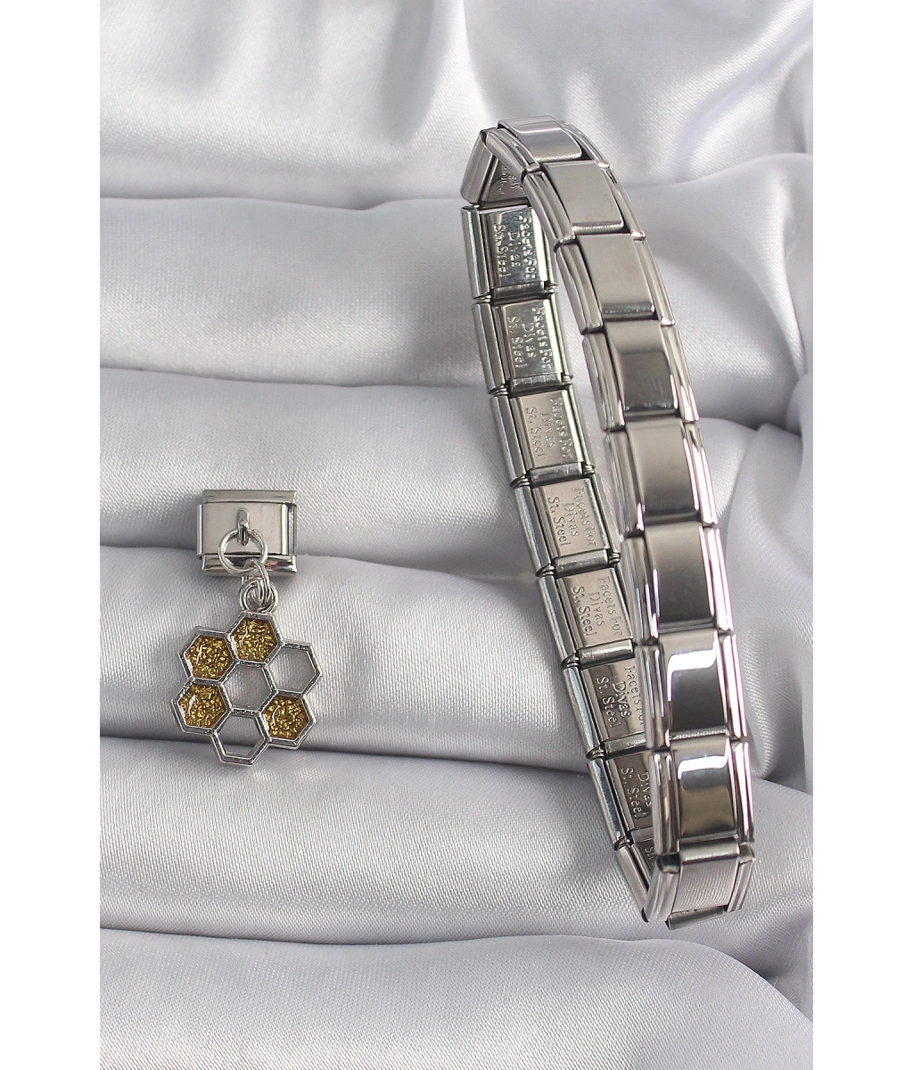 Shoecide 316l Çelik Gümüş Renk Sallantı Simli Bal Beteği Model Nomination Charm