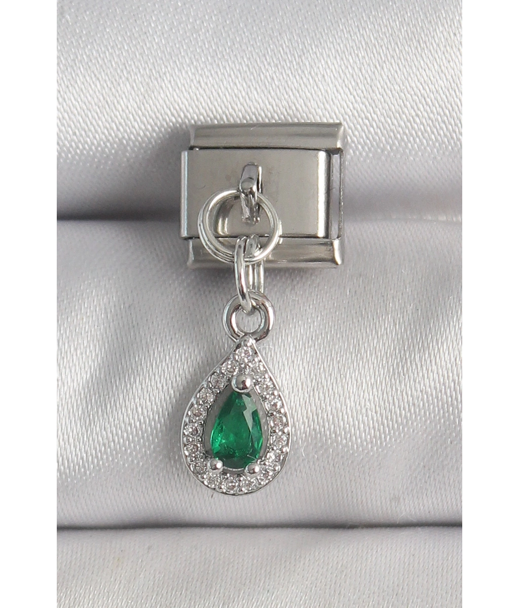 Shoecide 316l Çelik Gümüş Renk Sallantı Yeşil Zirkon Taşlı Damla Model Nomination Charm