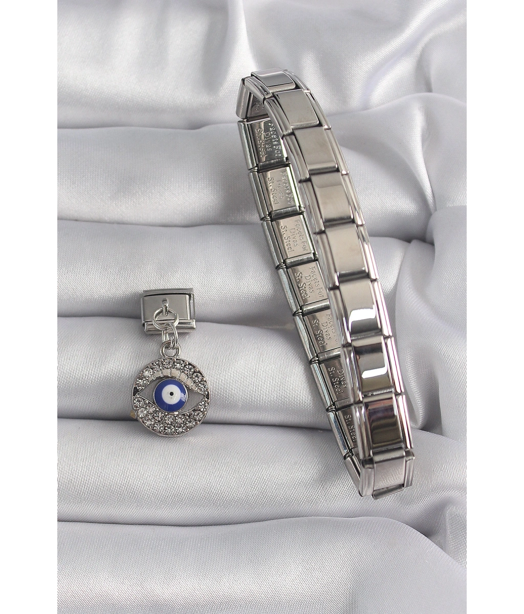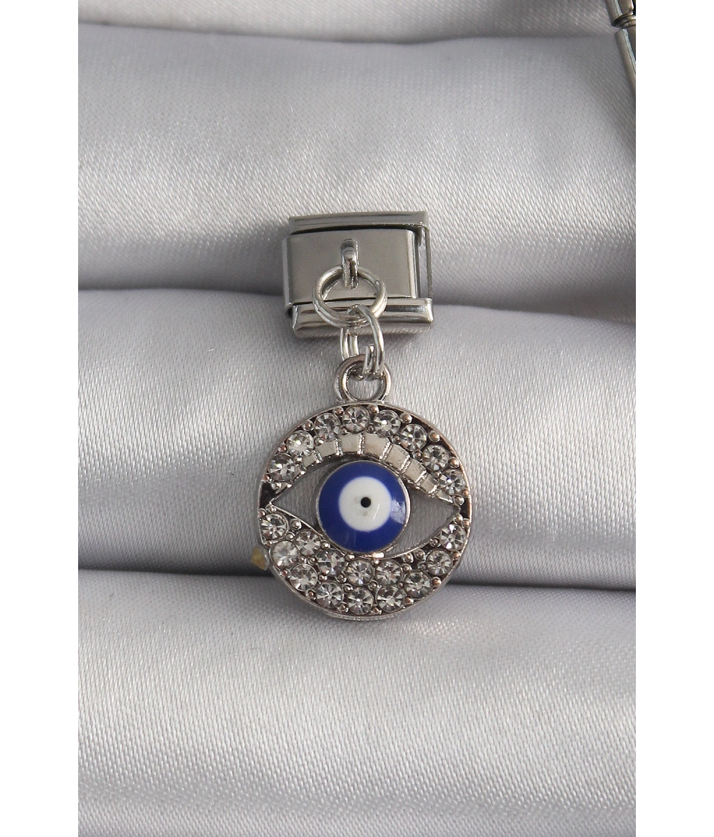 Shoecide 316l Çelik Gümüş Renk Sallantı Zirkon Taşlı Göz Model Nazar Boncuk Detay Nomination Charm
