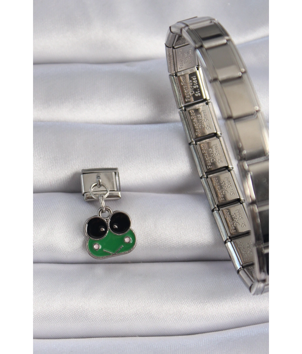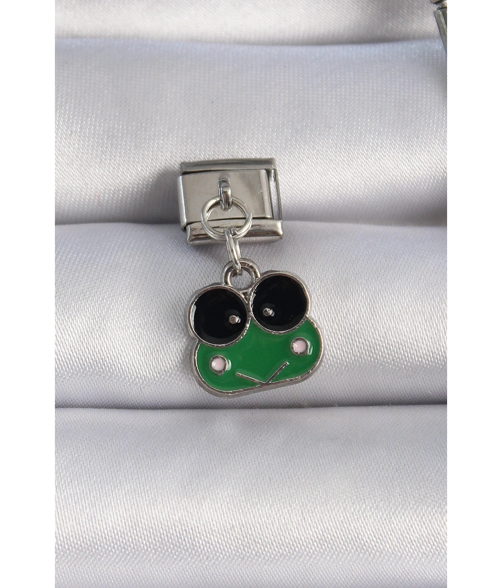 Shoecide 316l Çelik Gümüş Renk Sallantılı Yeşil Kurbağa Figür Nomination Charm