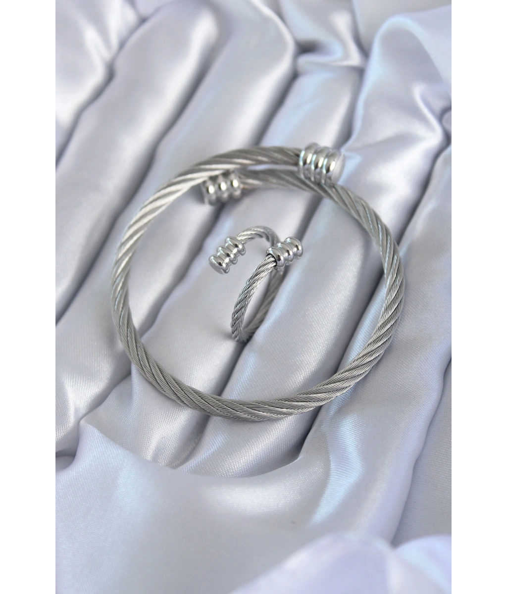 Shoecide 316l Çelik Gümüş Renk Sarmal Model Erkek Bileklik Yüzük Kombini