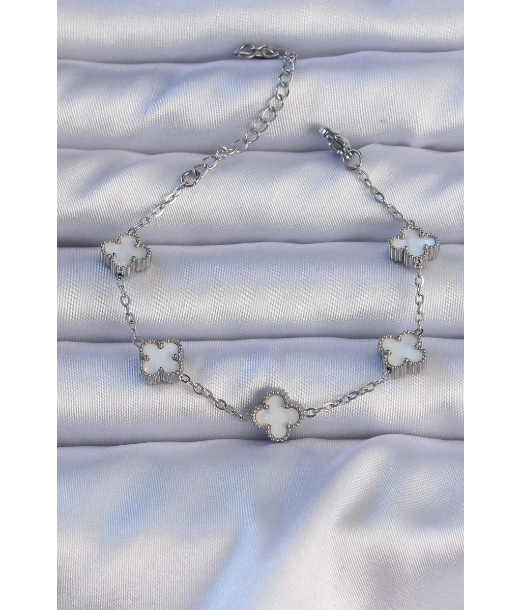 Shoecide 316l Çelik Gümüş Renk Sedefli Baby Boy Yonca Model Bileklik