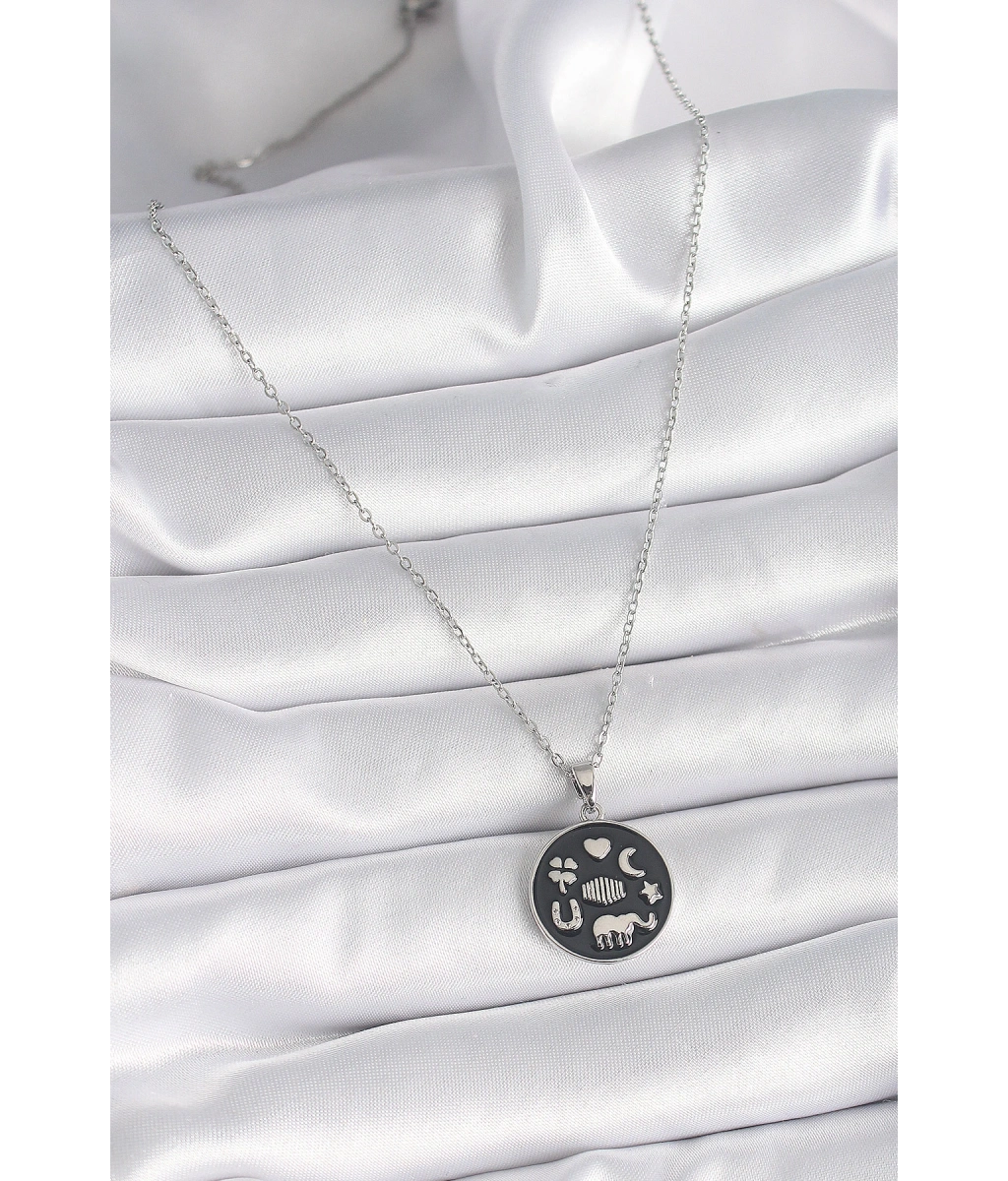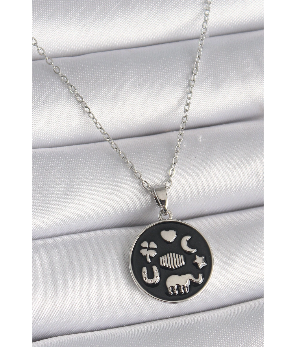 Shoecide 316l Çelik Gümüş Renk Siyah Renk Şans Kolyesi
