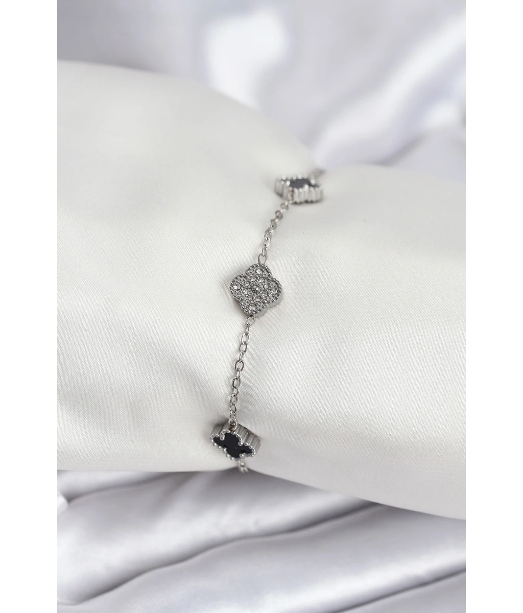 Shoecide 316l Çelik Gümüş Renk Siyah Ve Zirkon Taşlı Baby Boy Yonca Kadın Bileklik