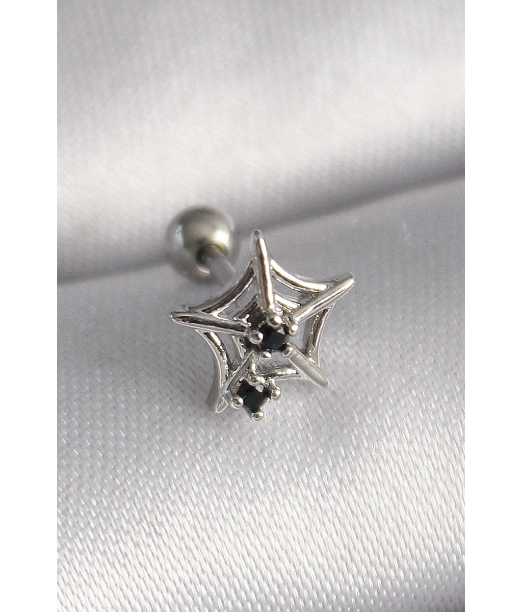 Shoecide 316l Çelik Gümüş Renk Siyah Zirkon Taş Detay Örümcek Ağ Model Tragus Piercing