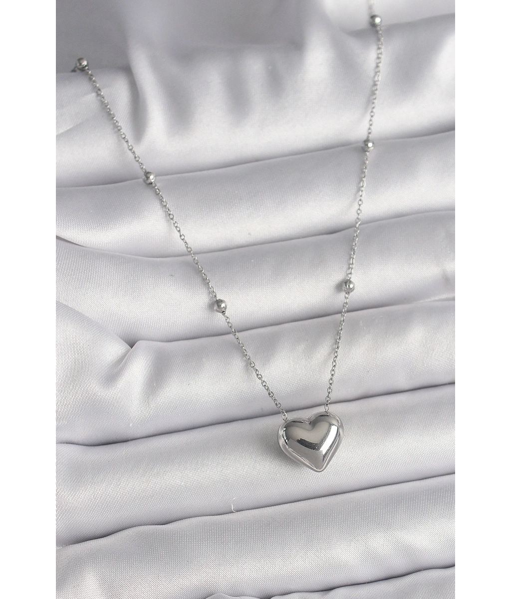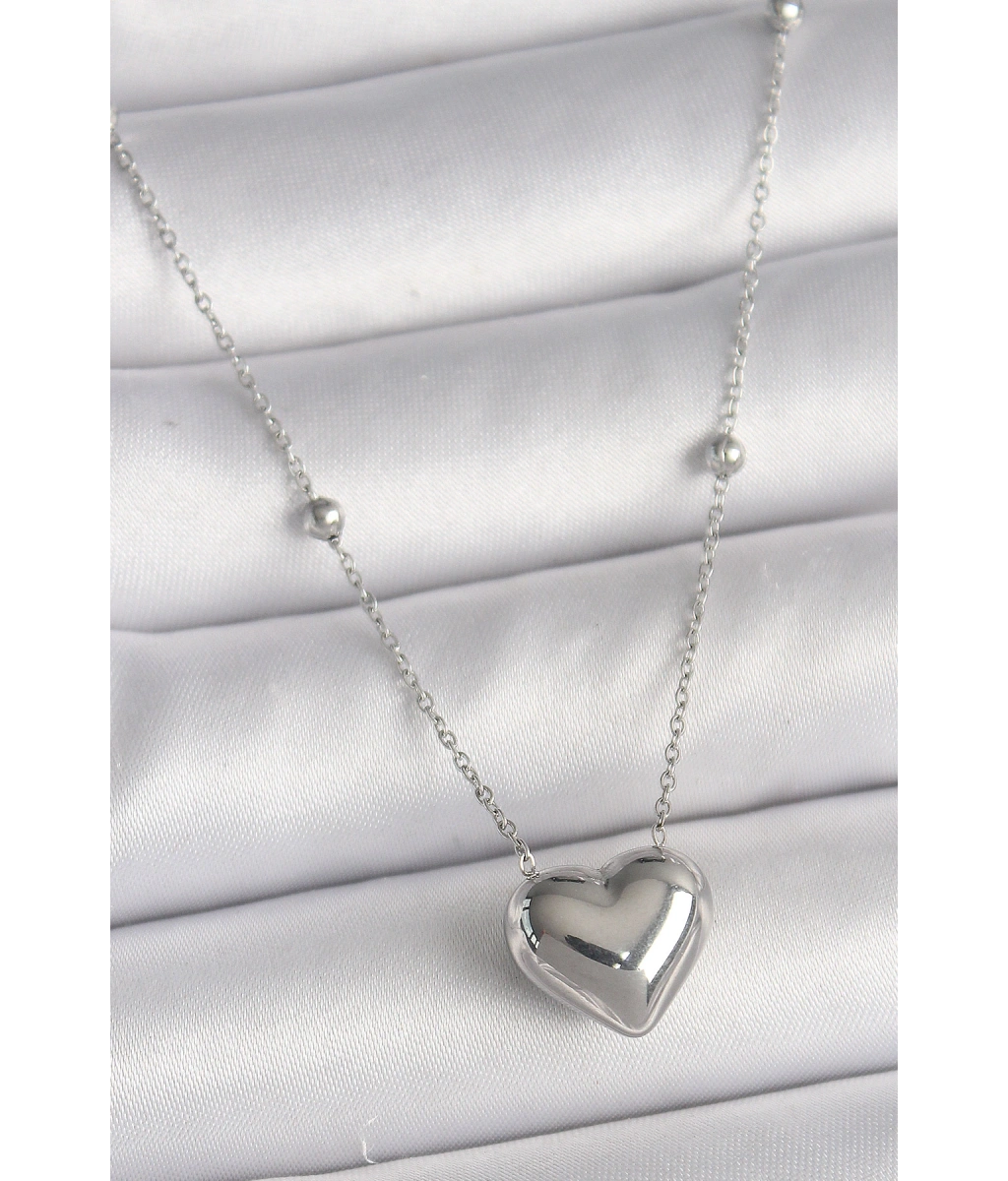 Shoecide 316l Çelik Gümüş Renk Topçuk Detay Zincir Kalp Model Kadın Kolye