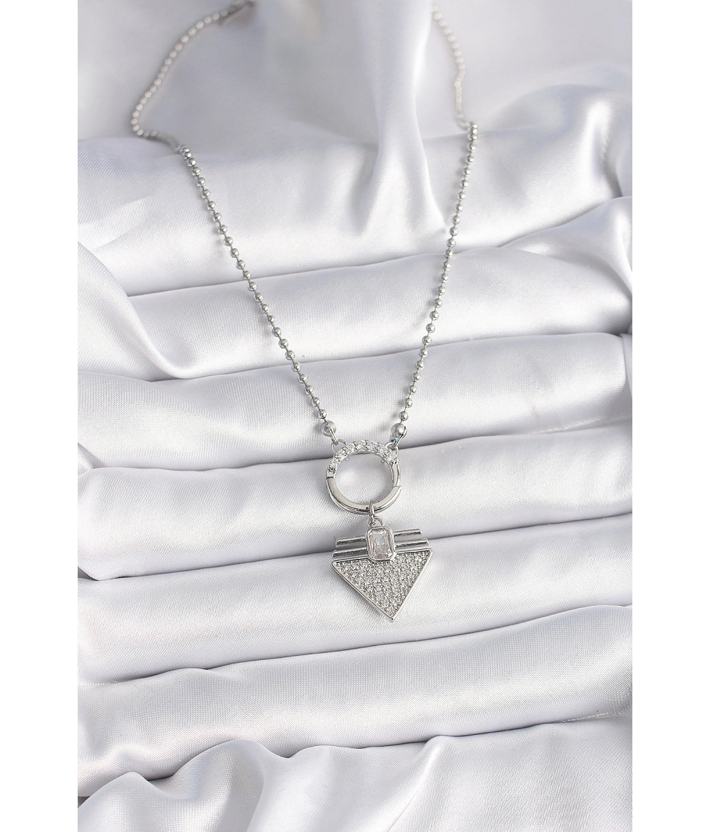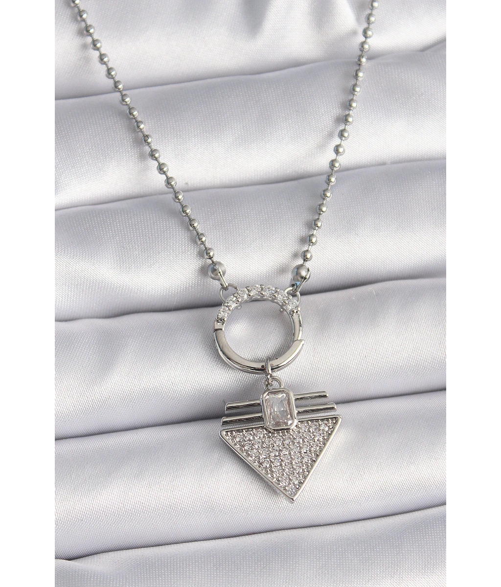 Shoecide 316l Çelik Gümüş Renk Topçuk Zincir Zirkon Taşlı Üçgen Model Kadın Kolye