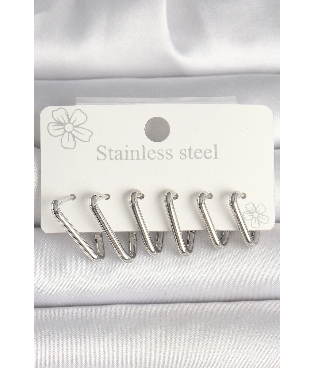Shoecide 316l Çelik Gümüş Renk Üçgen Model Kadın Küpe Seti