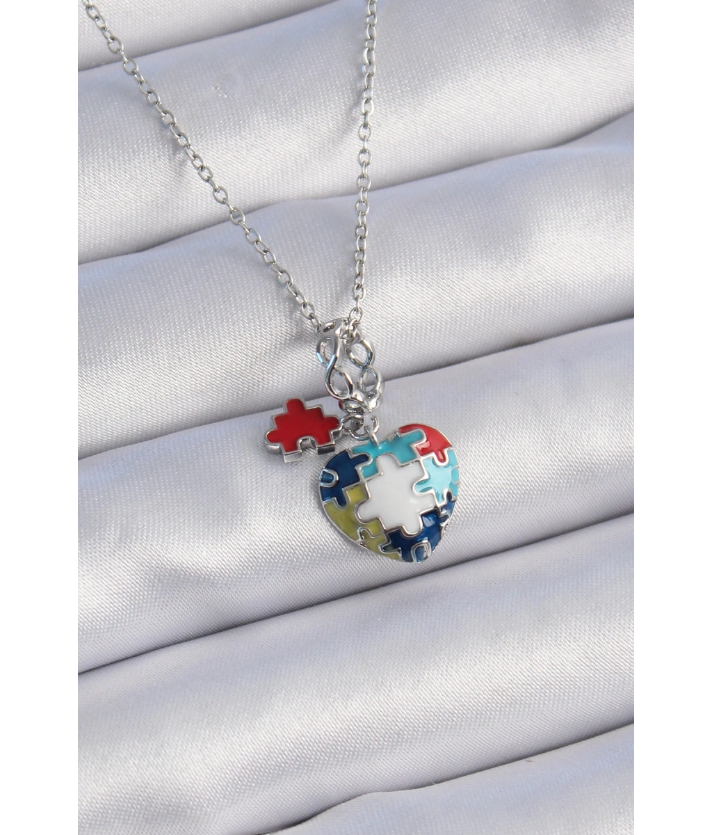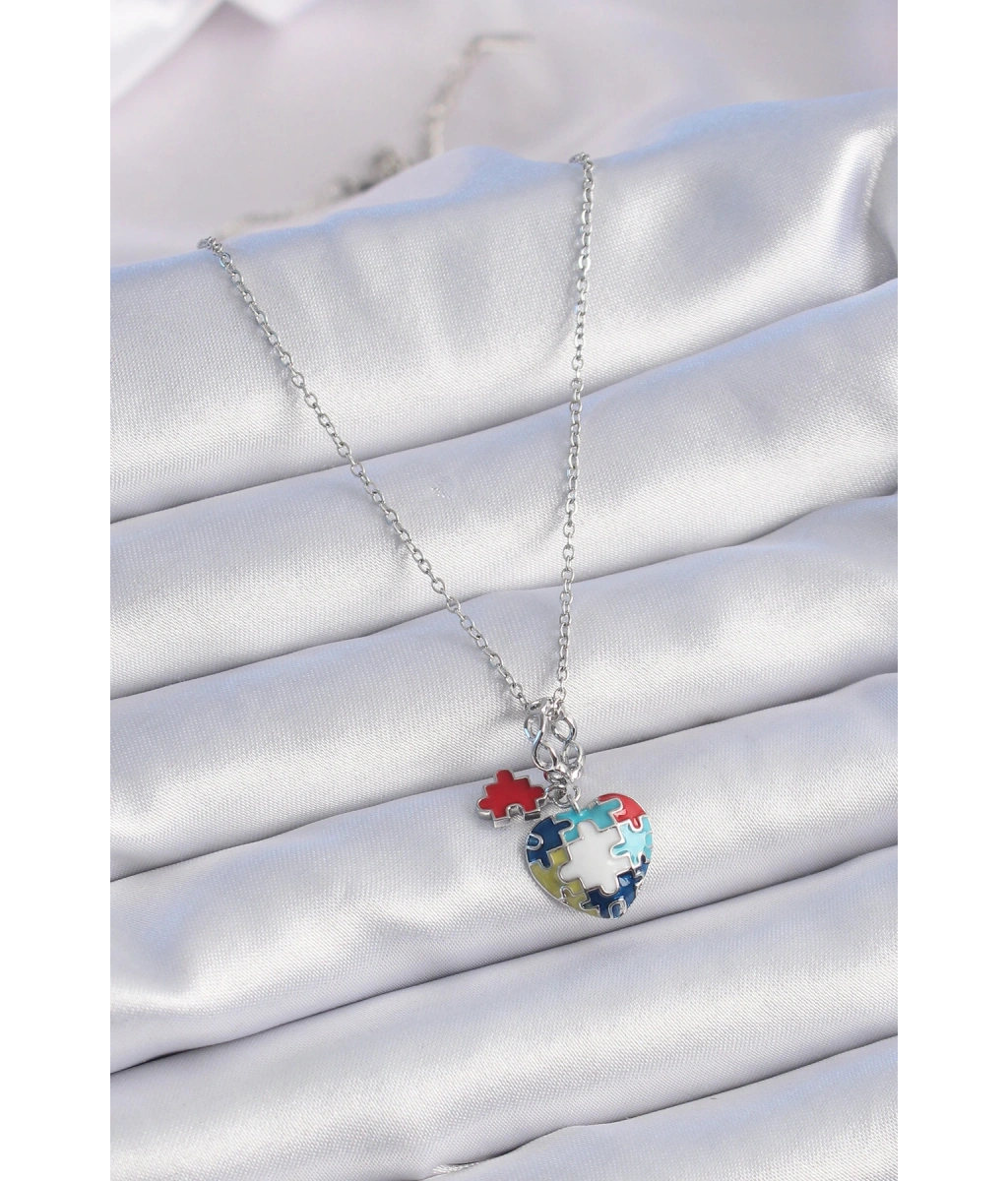 Shoecide 316l Çelik Gümüş Renk Yapboz Motif Kalp Figür Charm Model Kadın Kolye