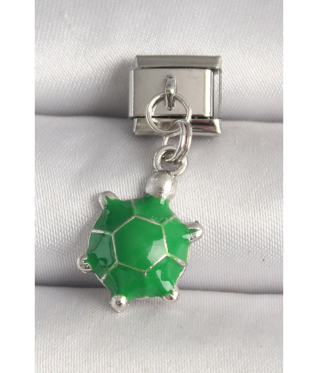 Shoecide 316l Çelik Gümüş Renk Yeşil Kaplumbağa Model Nomination Charm