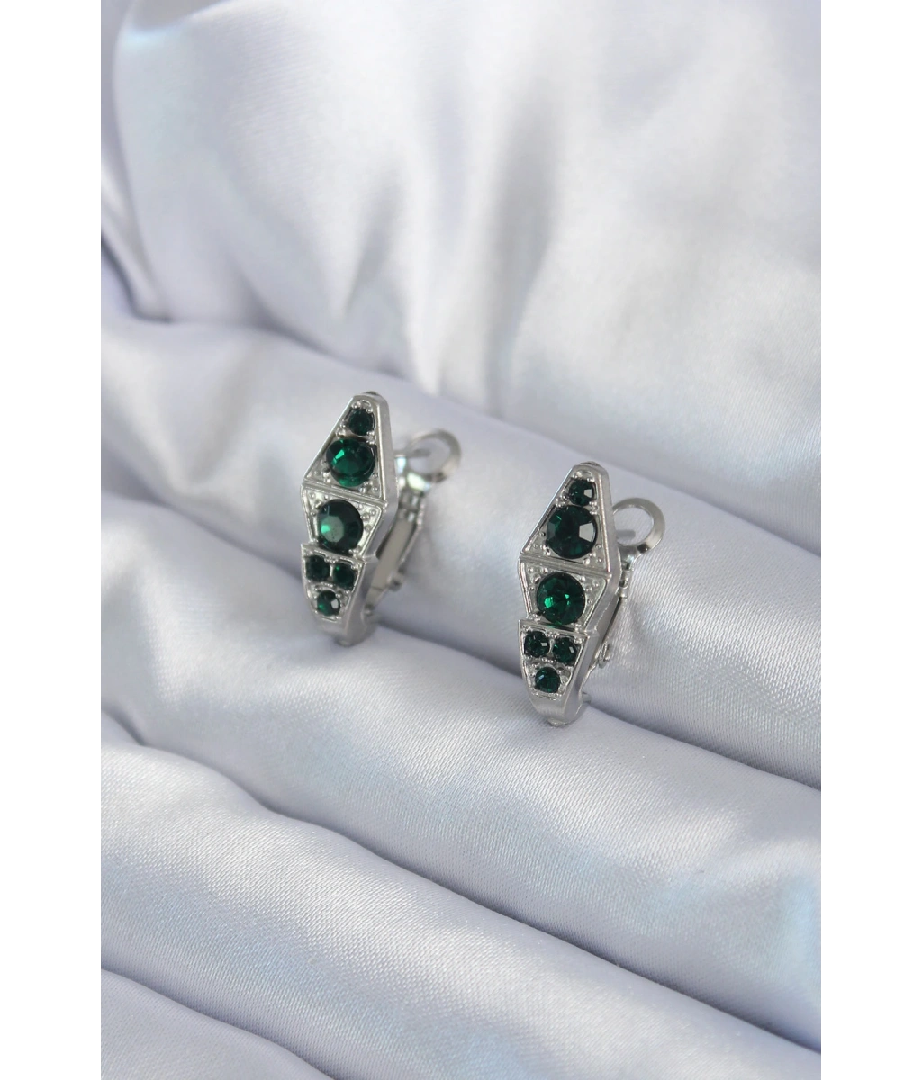 Shoecide 316l Çelik Gümüş Renk Yeşil Kristal Taş İşleme Yılan Model Kadın Küpe