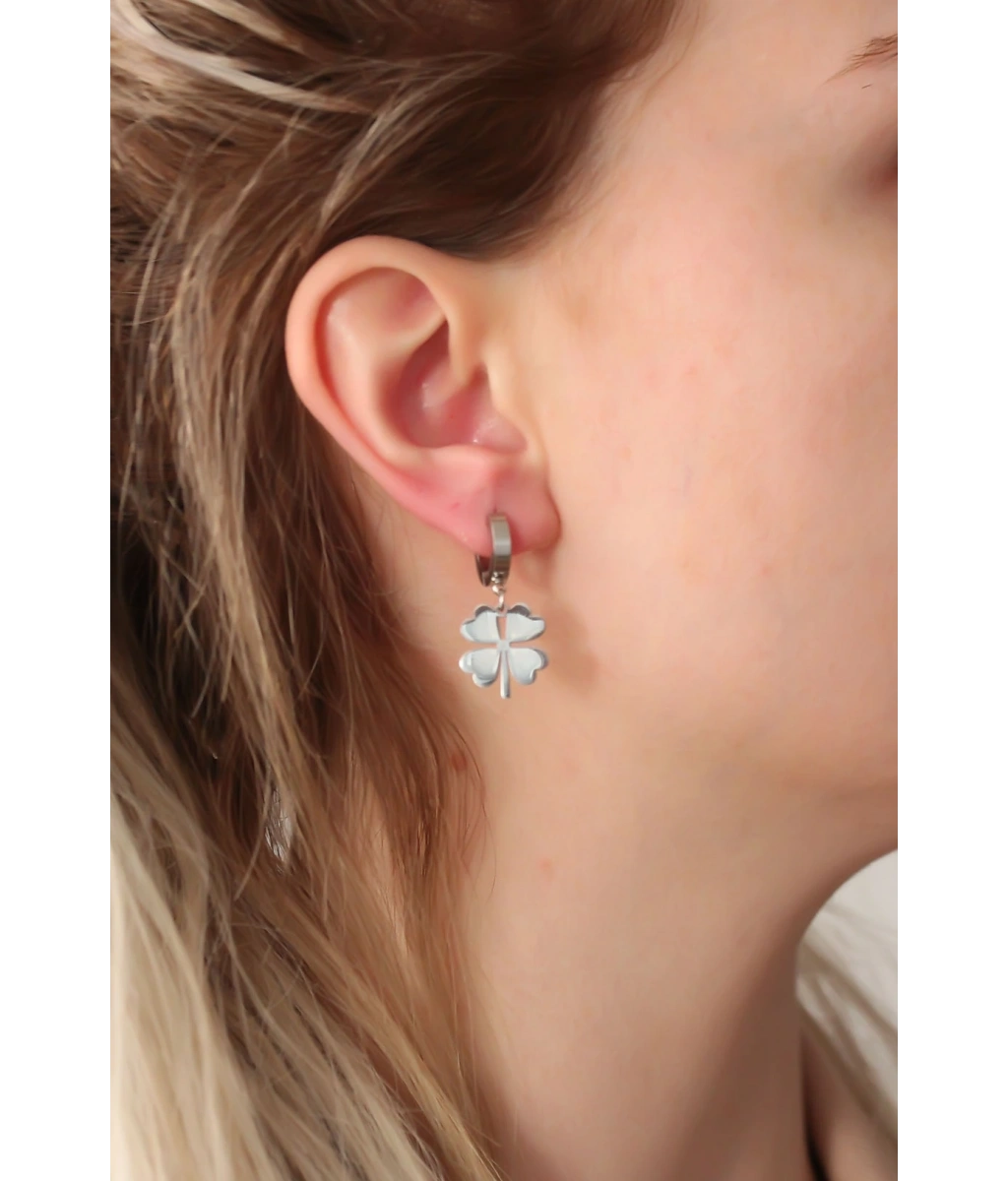Shoecide 316l Çelik Gümüş Renk Yonca Küpe