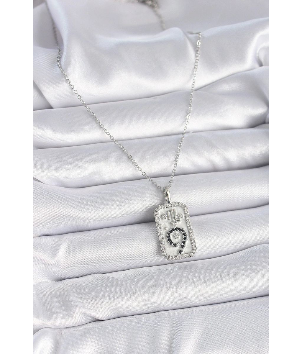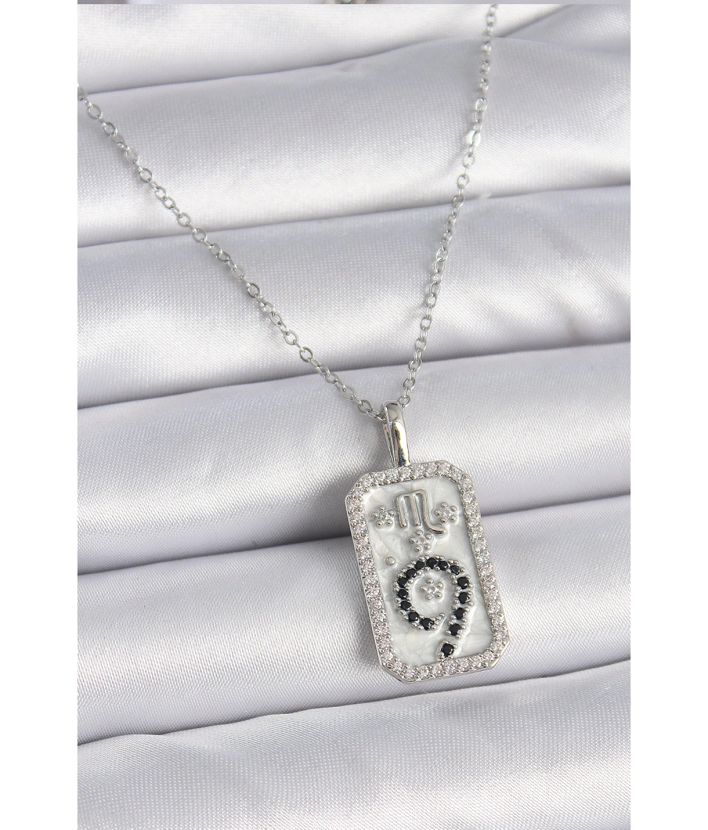 Shoecide 316l Çelik Gümüş Renk Zincir Akrep Burcu Zirkon Taşlı Kadın Kolye