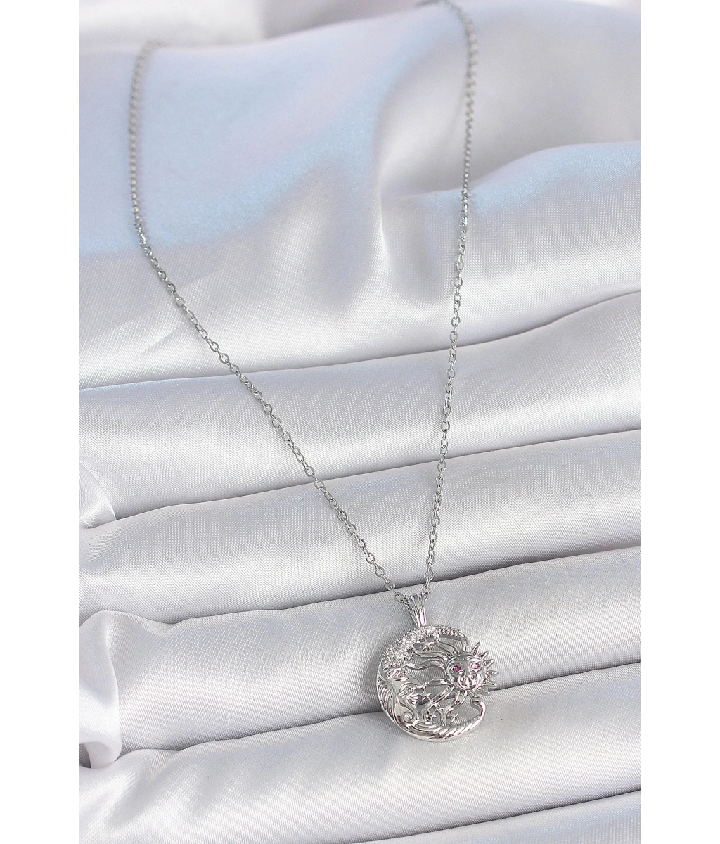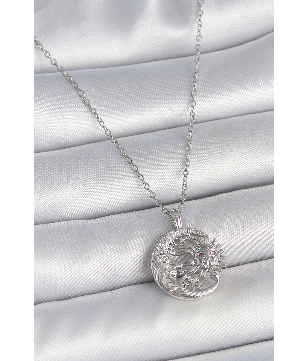 Shoecide 316l Çelik Gümüş Renk Zincir Ay Güneş Model Zirkon Taş Detay Kadın Kolye