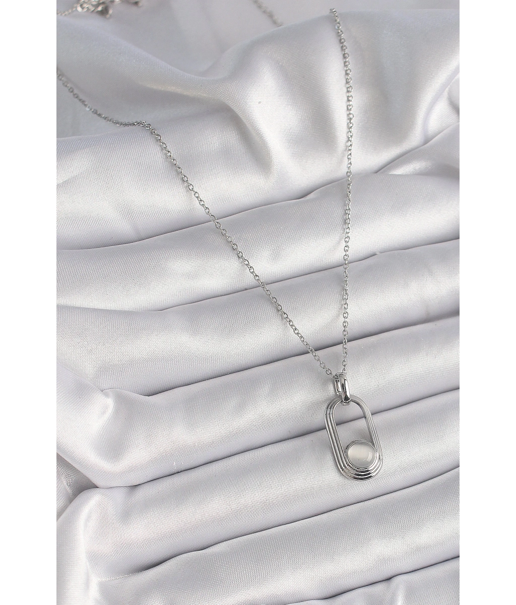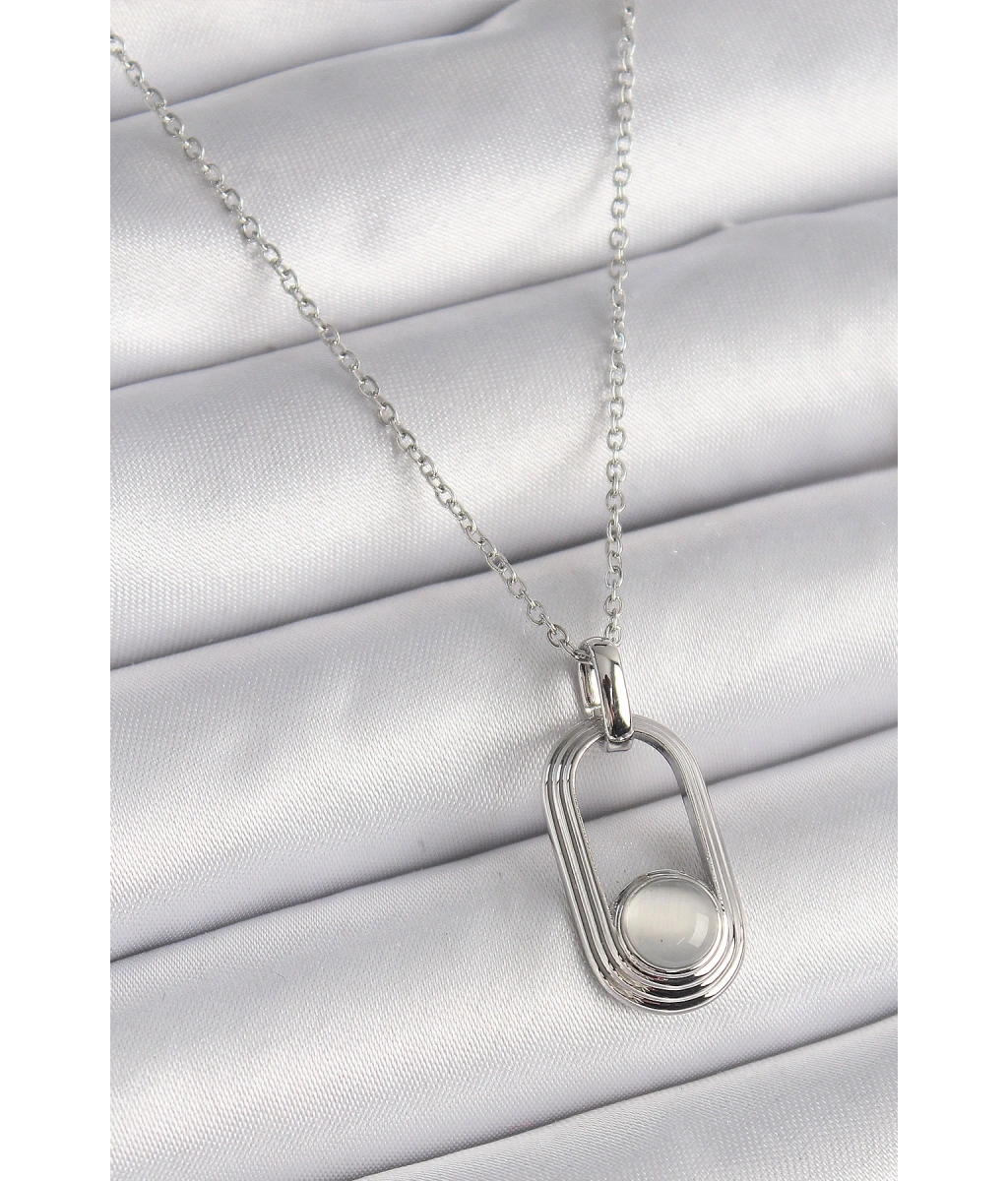 Shoecide 316l Çelik Gümüş Renk Zincir Beyaz Kedi Göz Model Kadın Kolye