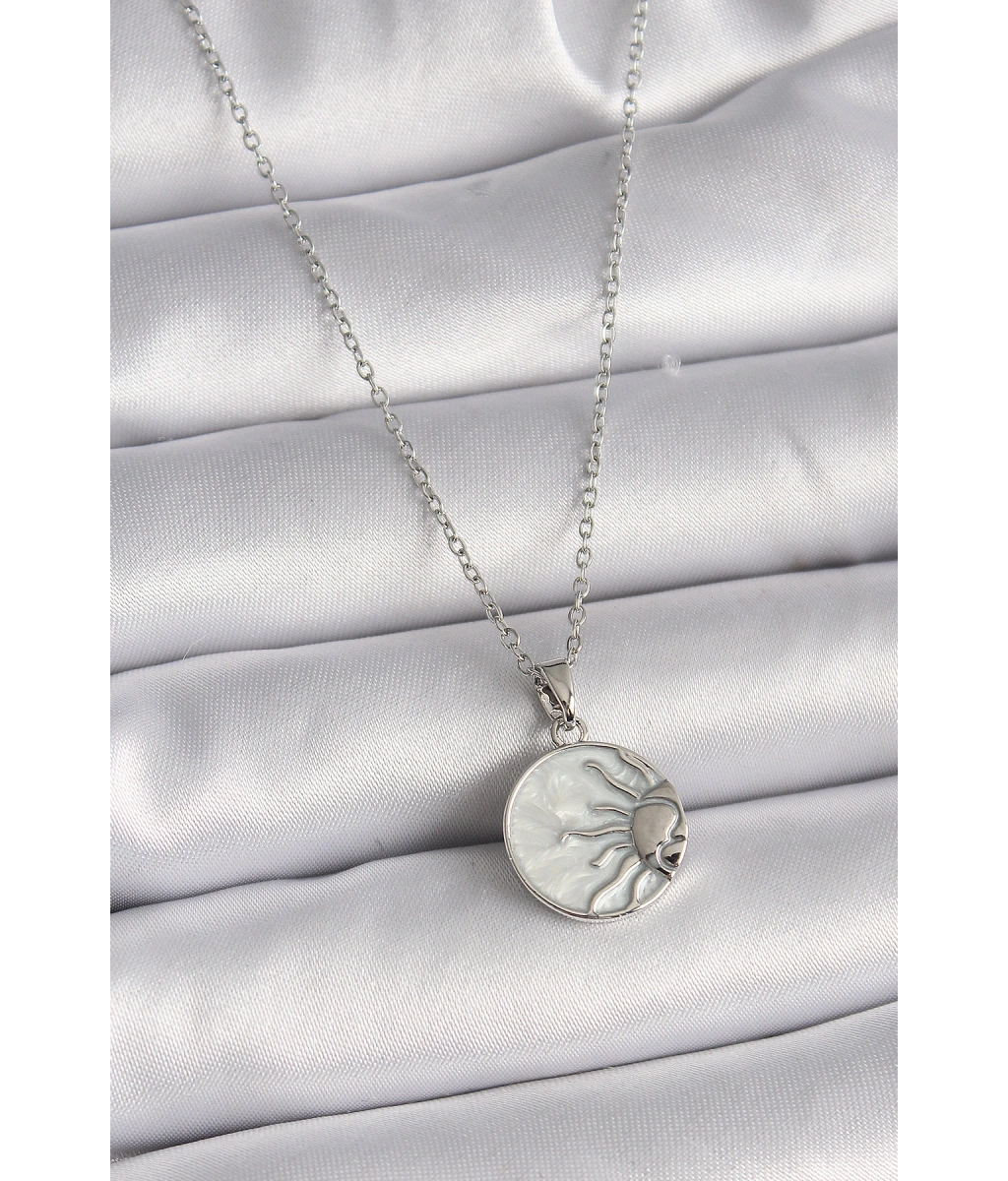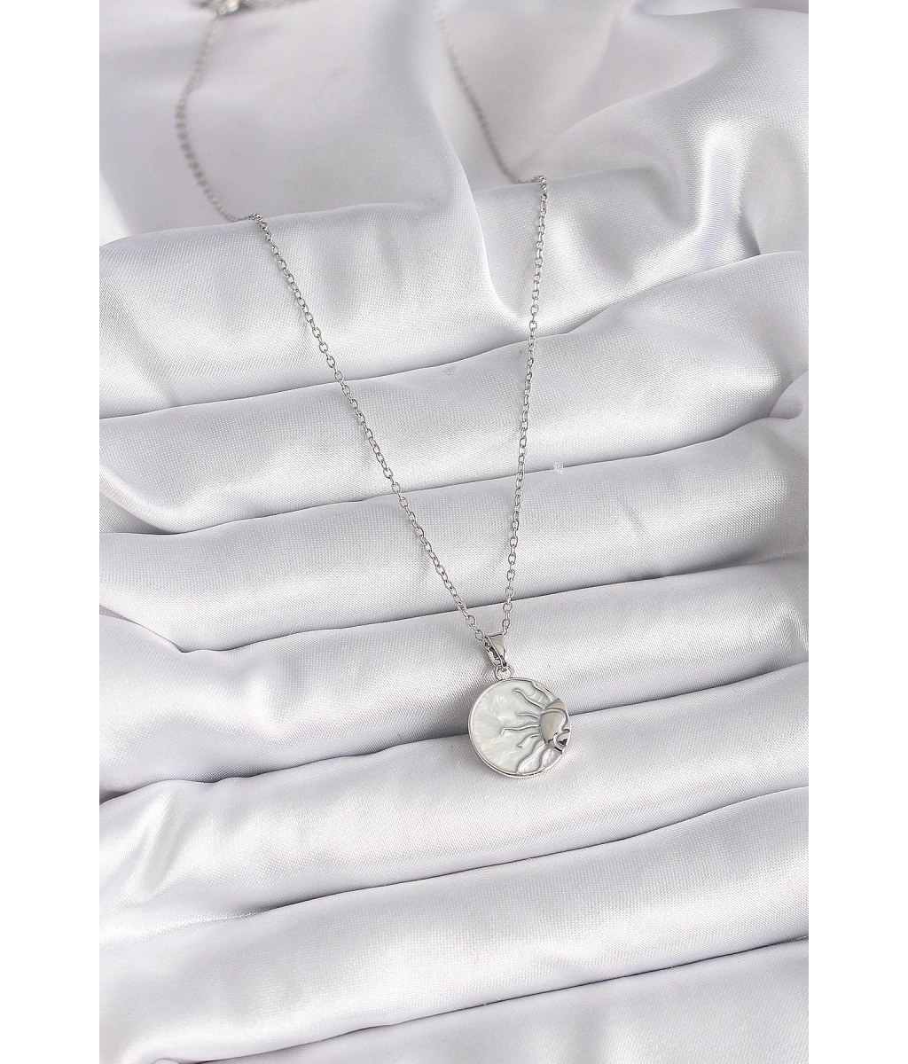 Shoecide 316l Çelik Gümüş Renk Zincir Beyaz Sedefli Gün Batımı Model Kadın Kolye