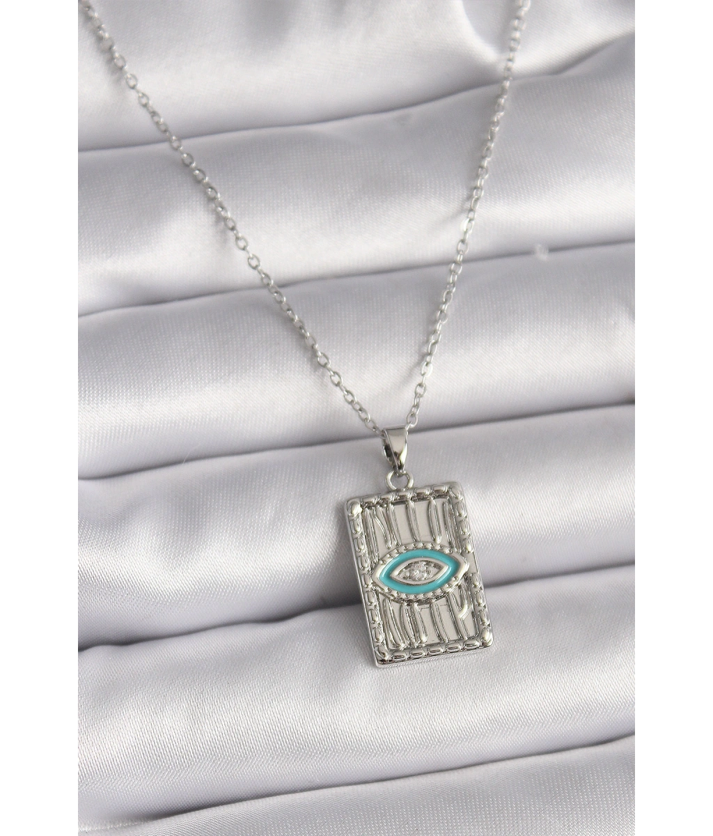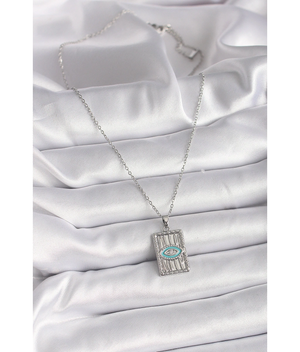 Shoecide 316l Çelik Gümüş Renk Zincir Göz İşlemeli Madalyon Model Kadın Kolye