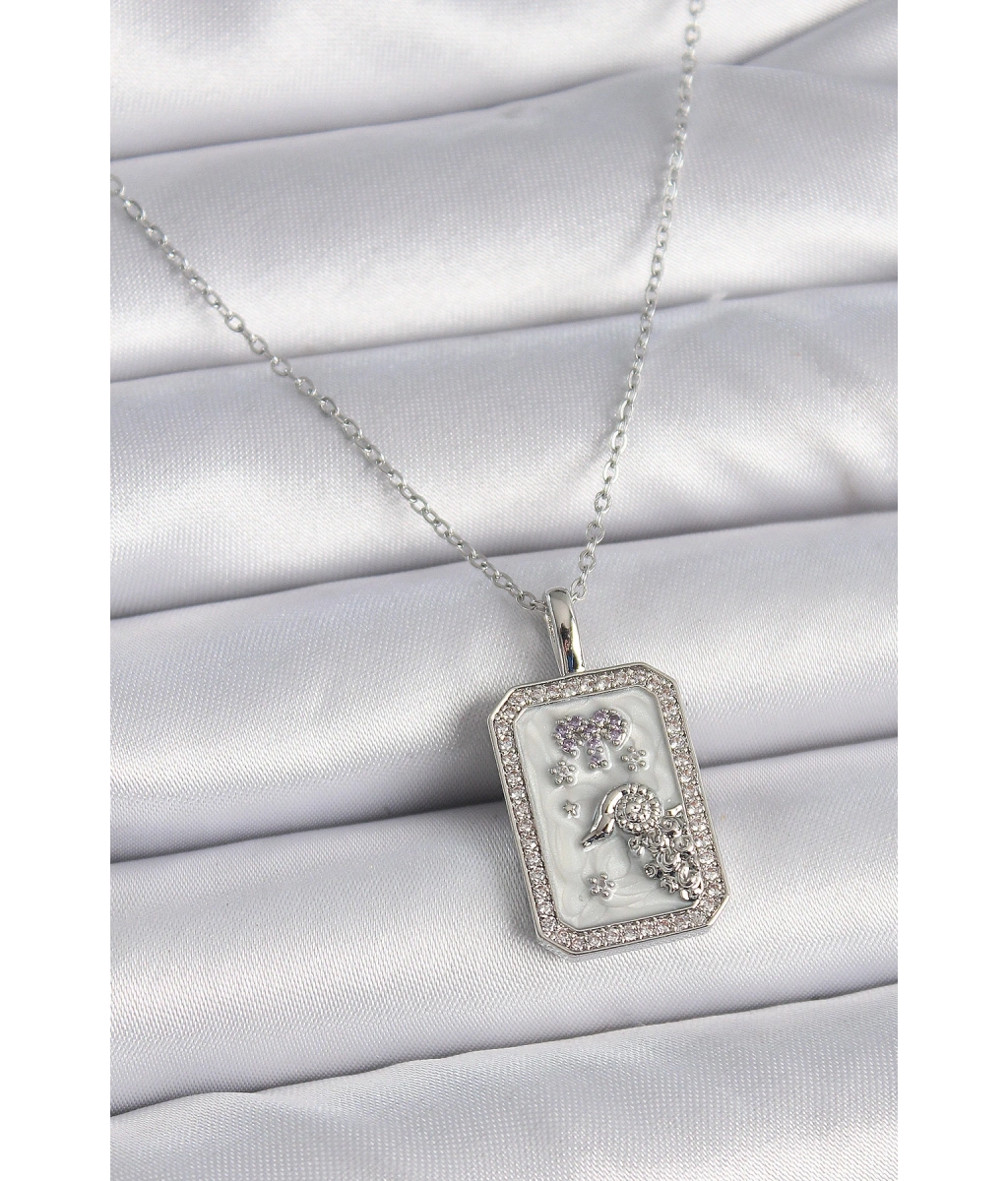 Shoecide 316l Çelik Gümüş Renk Zincir Koç Burcu Zirkon Taşlı Kadın Kolye